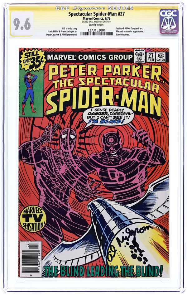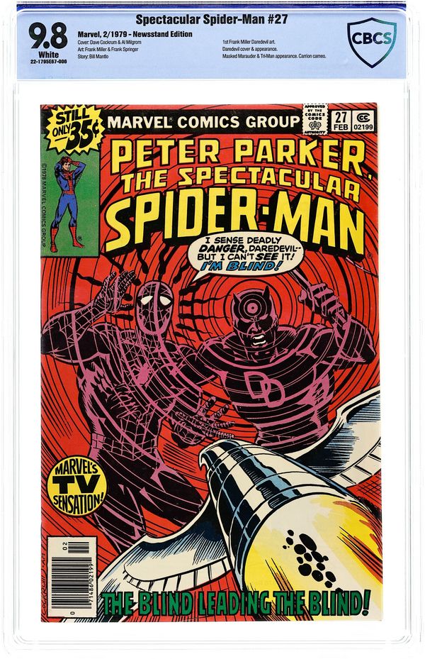 Ends Dec 8 9:24 PM CST Bid History 4 bids Current Bid $12 Your Secret Max Bid If you'd like to bid, please log in or register. 1st Printing. "The Blind Leading The Blind" Guest-starring Daredevil. Script by Bill Mantlo. Pencils by Frank Miller (1st work on Daredevil). Inks by Frank Springer. Cover by Dave Cockrum and Al Milgrom. One of the classic issues of the bronze age. Two blind super-heroes are on the trail of the Masked Marauder and the Tri-Man! Can Daredevil lead Spider-Man to the secret lair of the Maggia? The Man Without Fear and the web-slinger must hurry, because the Masked Marauder is set to launch his atomic bombdroid to destroy the city! Cameo appearances by Mary Jane Watson and Carrion. (Notes: This issue includes a one-page retelling of Daredevil's origin. This issue was reprinted in 1984 in Spider-Man and Daredevil 1, in 1993 through JC Penney Catalog identifiable by having the words "The Amazing Spider-Man" printed in the UPC box, and again in 1994 in The Complete Frank Miller Spider-Man). 36 pages Cover price $0.35.