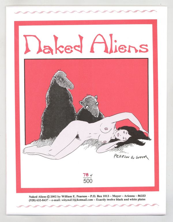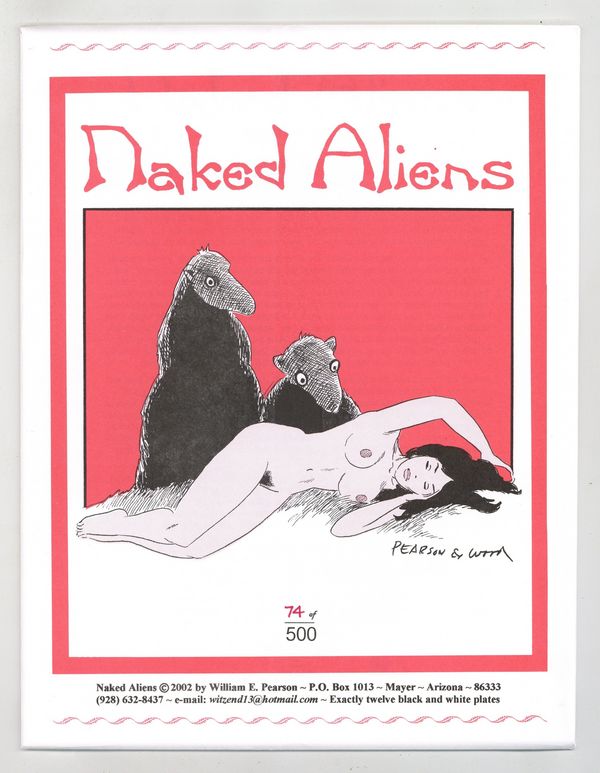 Part of a set of portfolios by Bill Pearson and Wallace Wood along with "Human Beans" and "Fancy Animals". Each set of 3 portfolios were individually numbered and limited to 500 copies. Contains 12 plates of inked and colored drawings with letter of description by Bill Pearson. 12 plates and letter, full color, Adults Only.