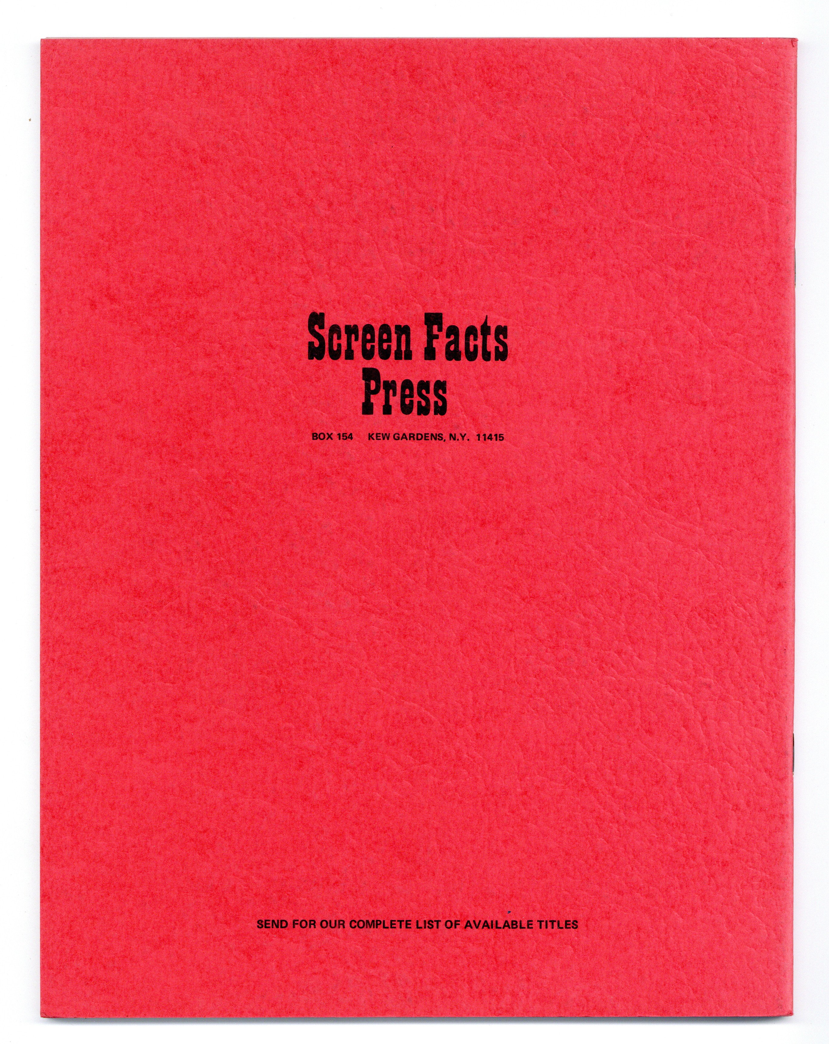 Published 1970 by Screen Facts Press.$27.008.5" x 11", 64 pages, B&W. Cover price $5.00.