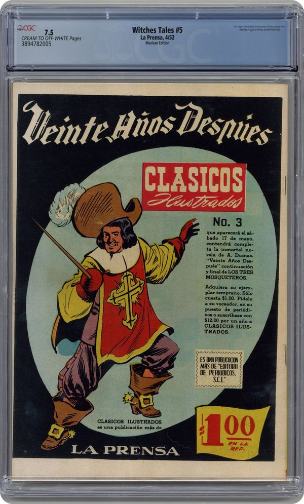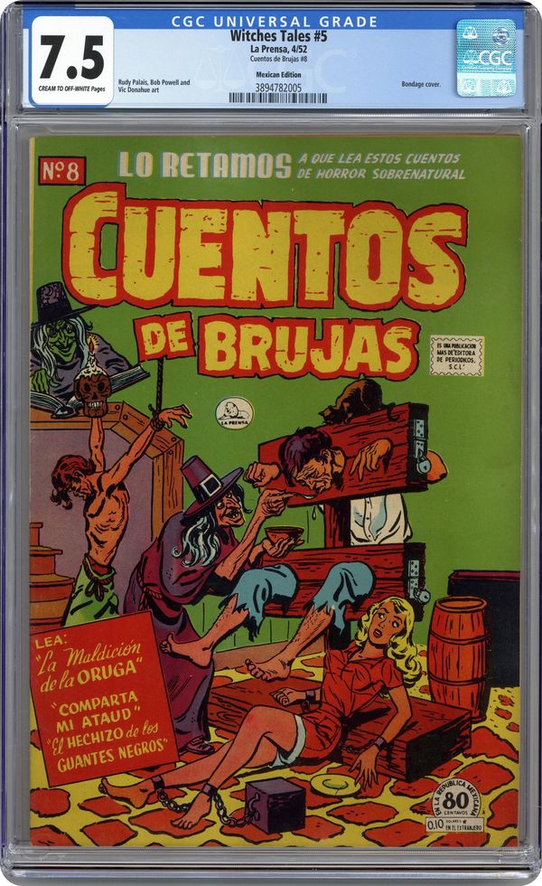 Mexican Reprint Series. Reprints cover from Witches Tales (1951 Harvey) #5. Art by Rudy Palais, Bob Powell, and Vic Donohue. Cover by Al Avison. Spanish Language.