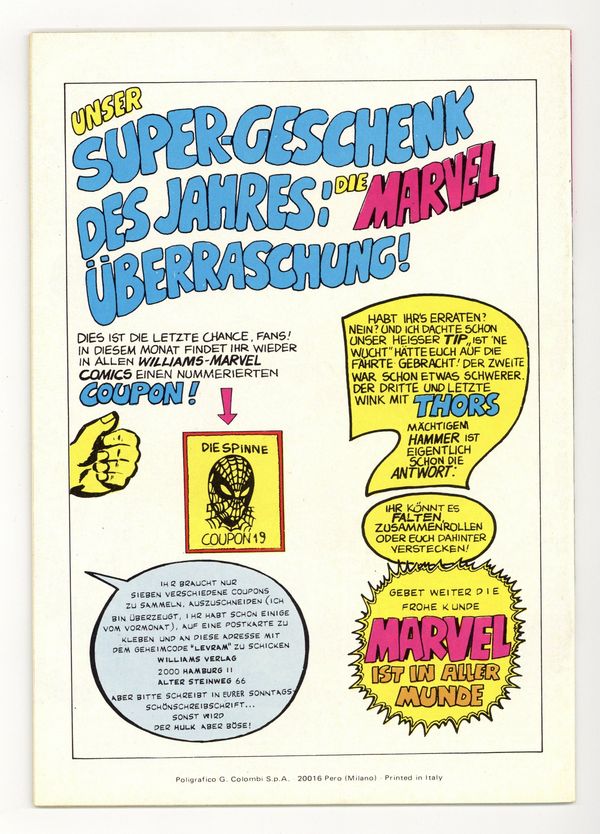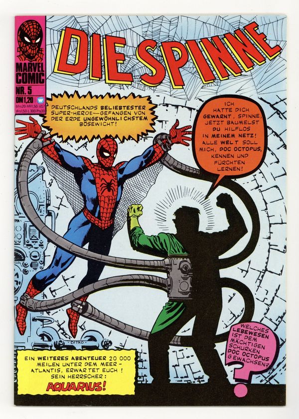 Published 1974 by BSV-Williams.$225.00German reprint series. Reprints material from Amazing Spider-Man (1963 1st Series) #3 and Tales to Astonish (1959-1968 1st Series) #75. Features the 1st appearance of Doctor Octopus. 7" X 9 7/8". 36 pages. Full Color. German Language.