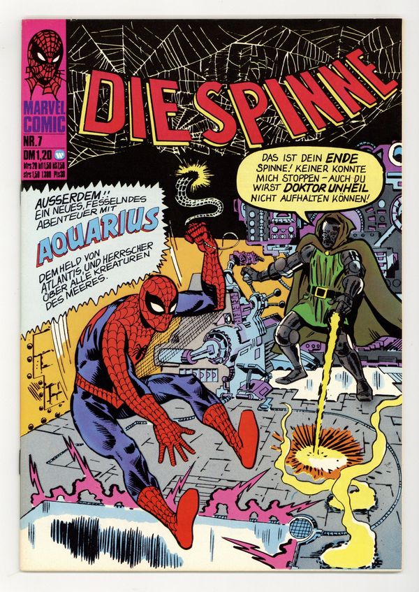 Tags: Spider-ManPublished 1974 by BSV-Williams.$225.00German reprint series. Reprints material from Amazing Spider-Man (1963 1st Series) #5 and Tales to Astonish (1959-1968 1st Series) #77. Doctor Doom Appearance. 7" X 9 7/8". 36 pages. Full Color. German Language.