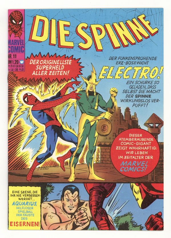 Published 1974 by BSV-Williams.$225.00German reprint series. Reprints material from Amazing Spider-Man (1963 1st Series) #9 and Tales to Astonish (1959-1968 1st Series) #82. Features the 1st appearance of Electro. 7" X 9 7/8". 32 pages. Full Color. German Language.