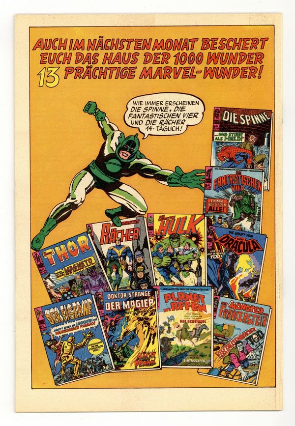 Published 1975 by BSV-Williams.$225.00German reprint series. Reprints material from Amazing Spider-Man (1963 1st Series) #50 and Sub-Mariner (1968 1st Series) #4. 7" X 10 1/4". Features the 1st appearance of The Kingpin. 32 pages. Full Color. German Language.