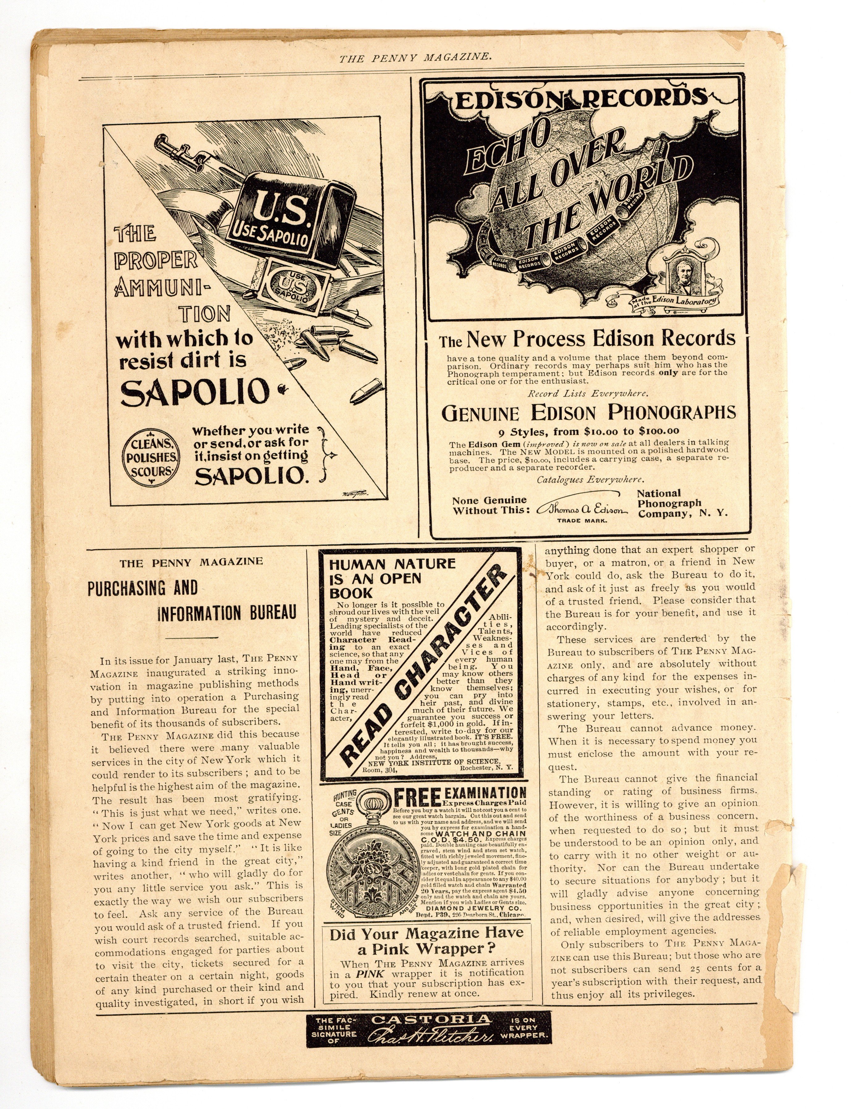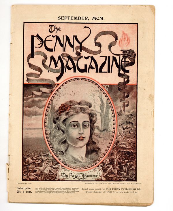 Published Sep 1900 by Penny Publishing Company.$10.00- Spine split 50%. Water damage: Slight. Staple rust: Moderate.