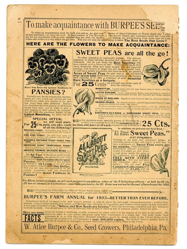 Published Mar 1893 by John Lewis Childs.$11.00- Spine split 40%. Water damage: Slight. Staple rust: Moderate.
