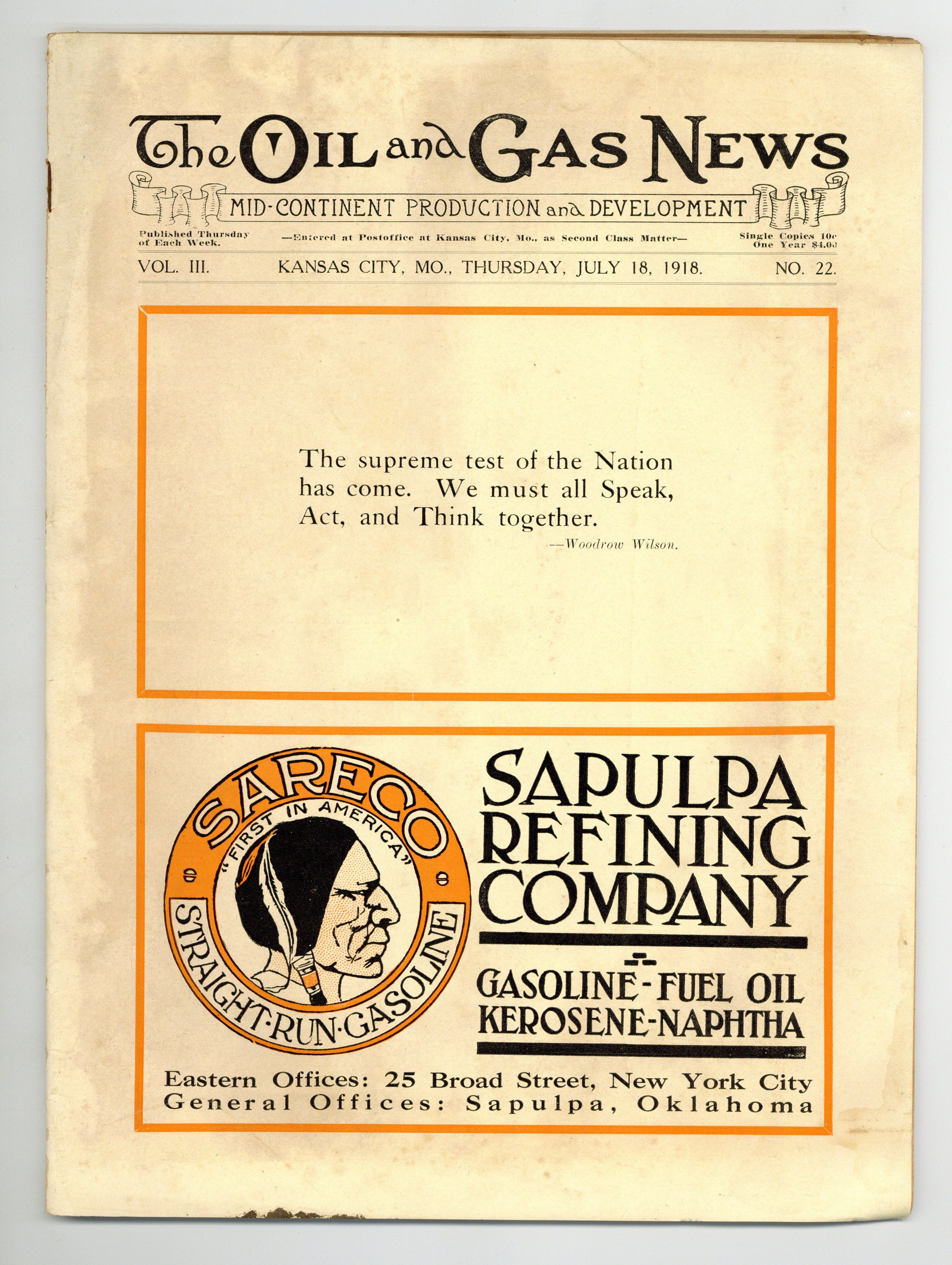 Published Jul 1918 by Oil and Gas News Publishing Co..$5.40- Spine split 5%. Water damage: Moderate. Staple rust: Moderate.