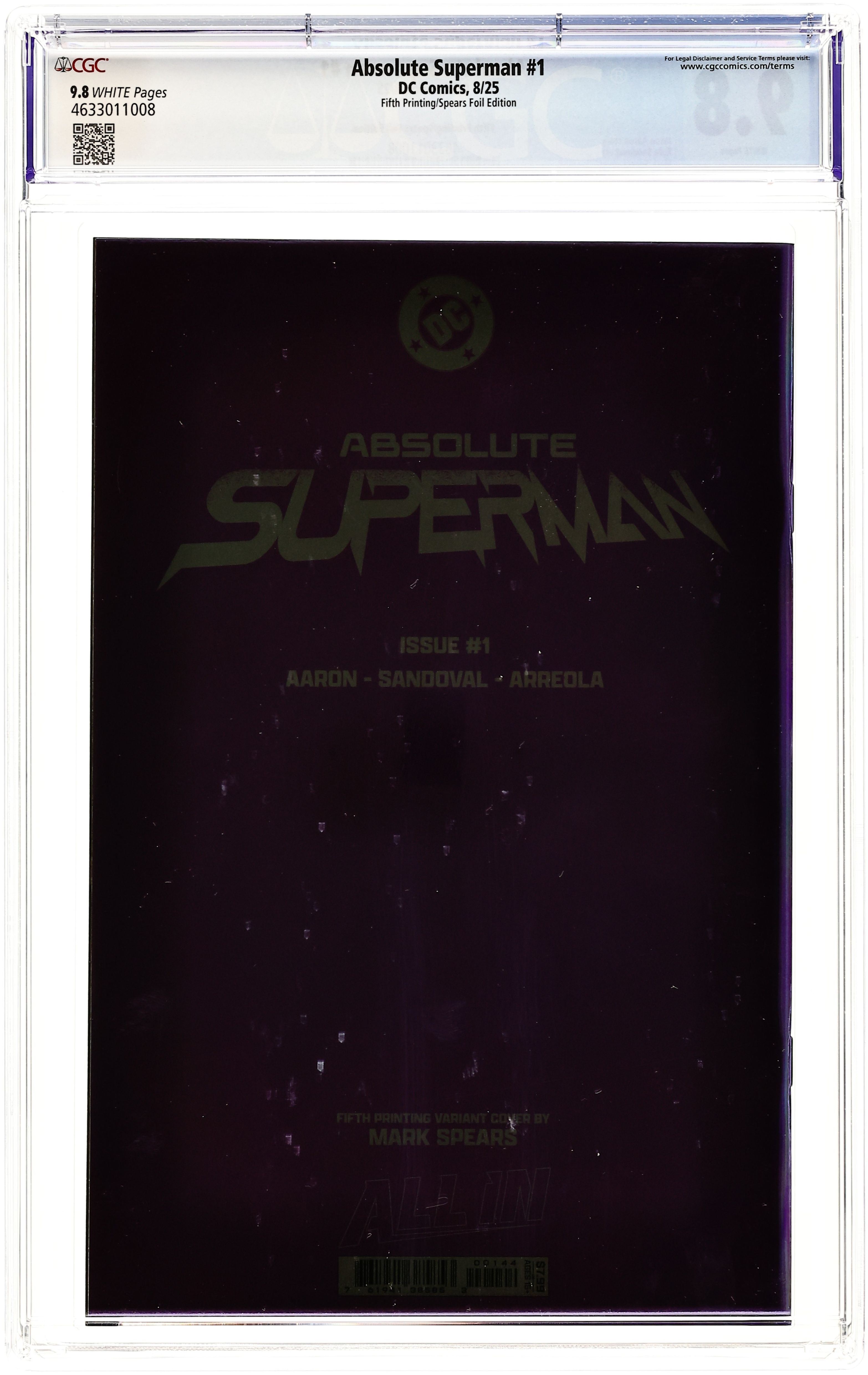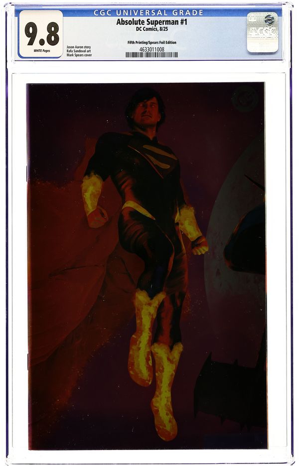 5th Printing. Cover C. Written by Jason Aaron. Art by Rafa Sandoval. Cover by Mark Spears. SUPERSTARS JASON AARON AND RAFA SANDOVAL UNLEASH A SHOCKING NEW TAKE ON THE LAST SON OF KRYPTON! Without the fortress...without the family...without a home...what's left is the Absolute Man of Steel! 48 pages, full color. Rated T+ Cover price $4.99.