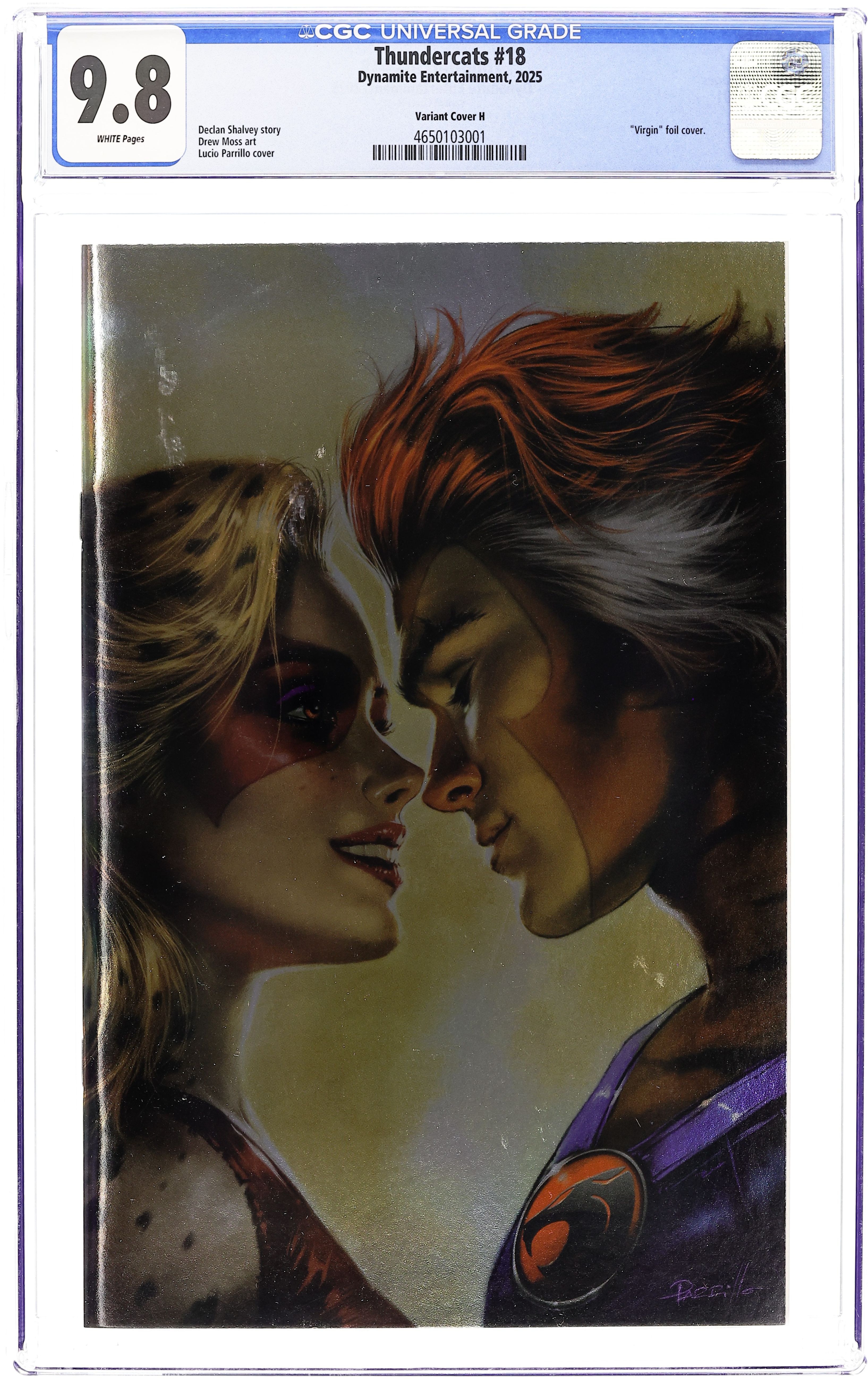 Written by Declan Shalvey. Art by Drew Moss. Cover by Lucio Parrillo. BEWARE THE ENEMIES - AND ALLIES - WITHIN! In the aftermath of the Knights of Thundera's ill-fated raid on the Mu'Tants, their thoroughly unimpressed prisoner sows fear throughout the Cats' Lair with dire warnings of retribution to come. Meanwhile, with tensions already escalating between factions within the ThunderCats' ranks, one newcomer crosses a line - and Tygra demands satisfaction in a ThunderDuel! 32 pages, full color. Rated T Cover price $4.99.