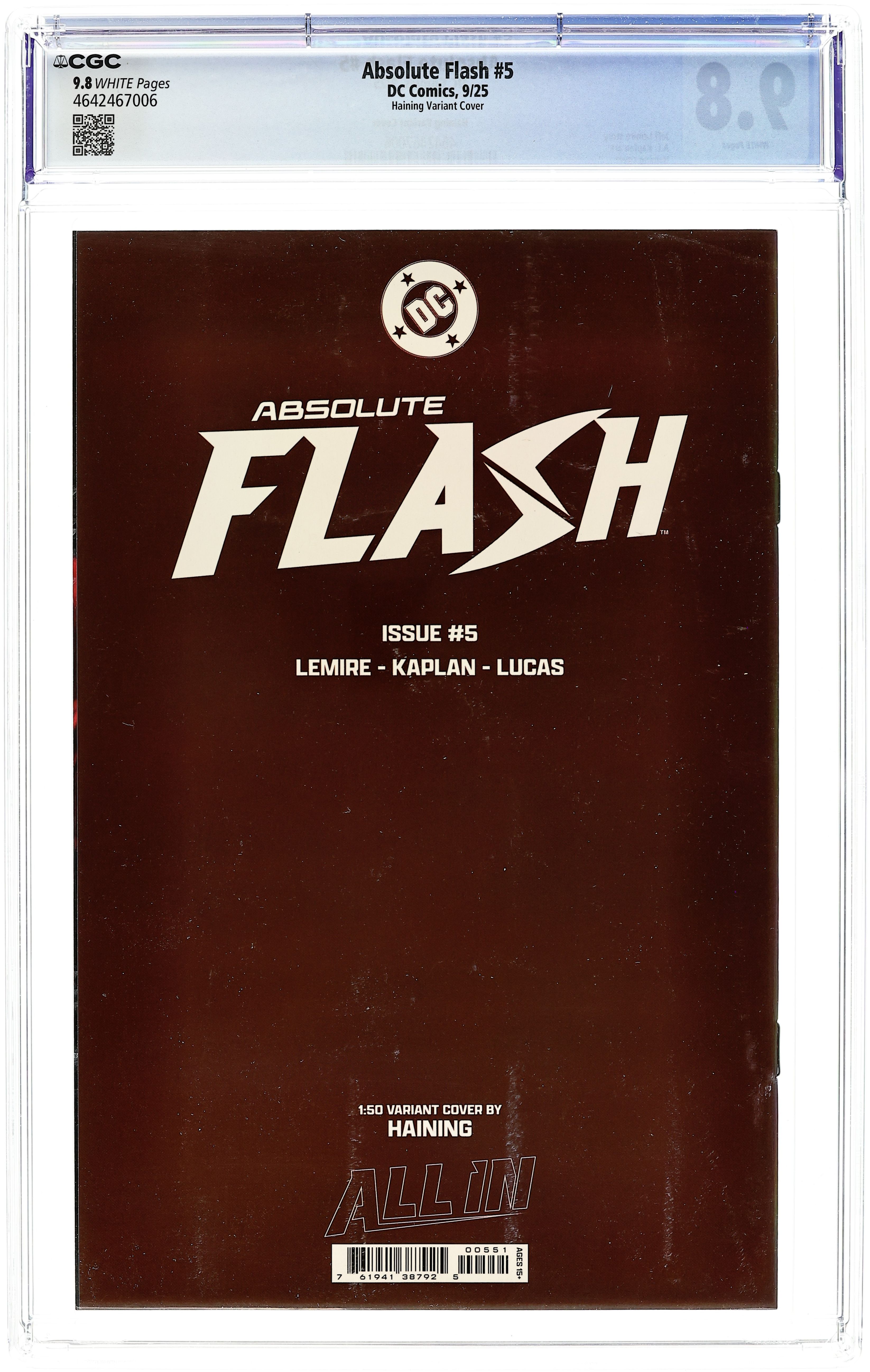 Limited 1 for 50 Retailer Incentive Variant Cover. Written by Jeff Lemire. Art by A.L. Kaplan. Cover by Haining. HEAT WAVE ATTACKS! Wally's going to need to learn to handle the heat as he faces down the monstrous Heat Wave! Can he evade his fiery grasp, or will the young speedster be burned to a crisp?! 32 pages, full color. Rated T+ Cover price $5.99.