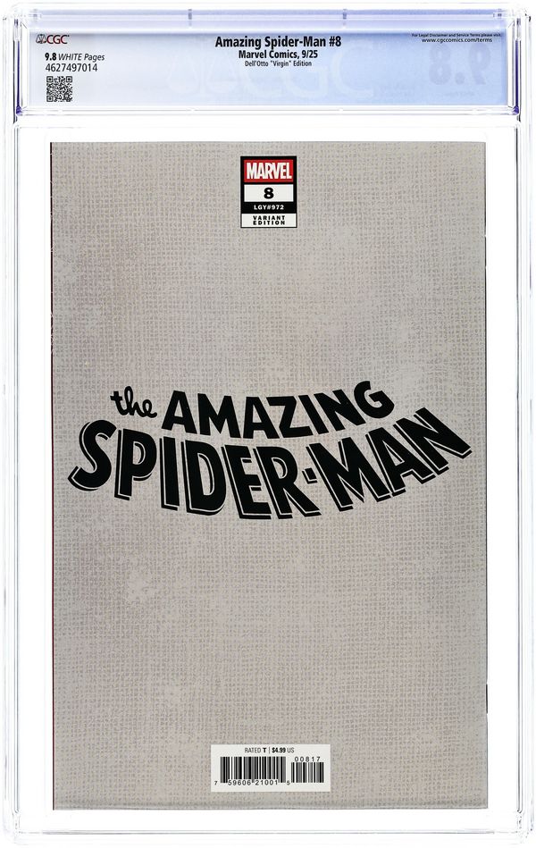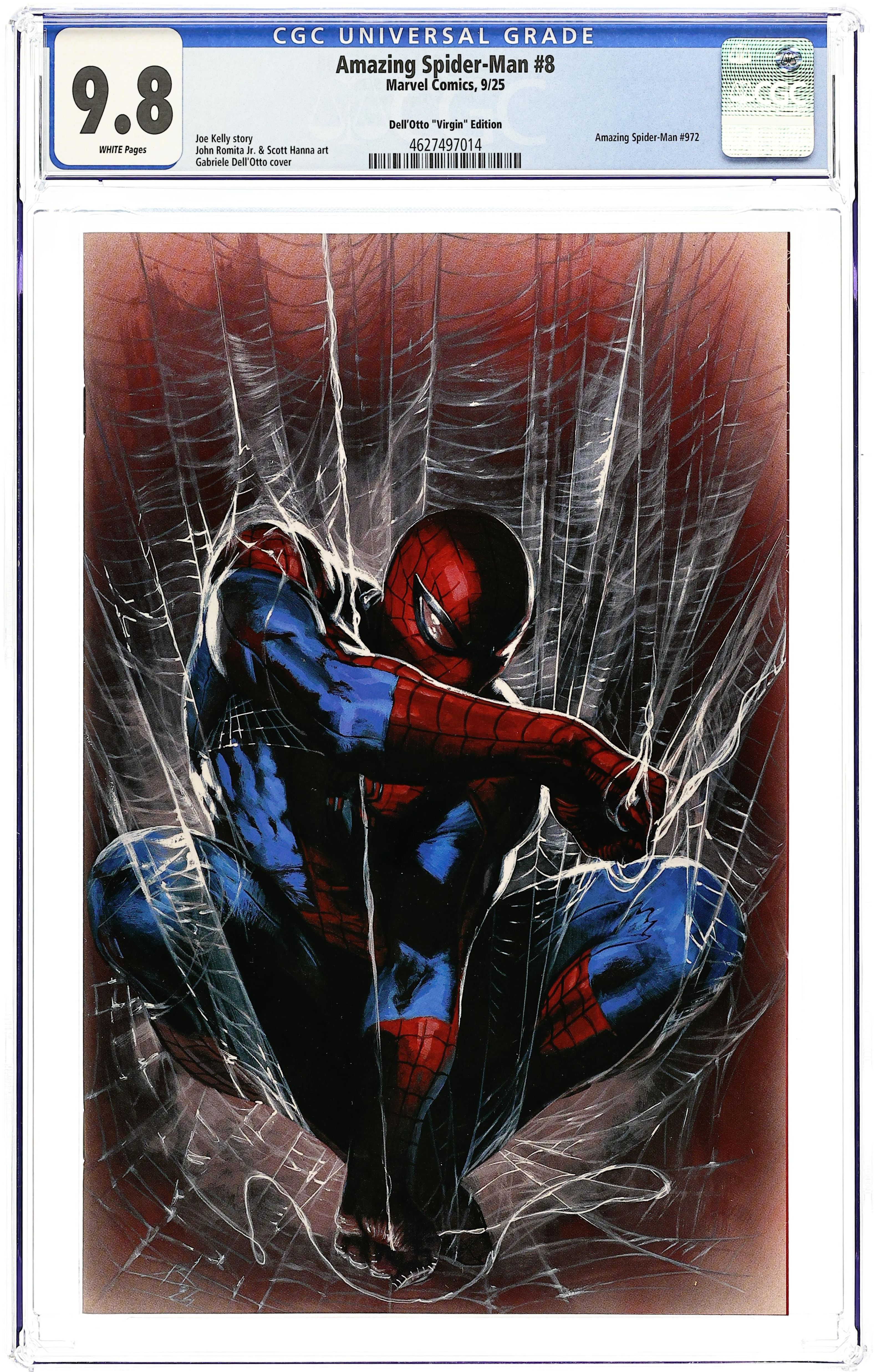 Limited 1 for 100 Retailer Incentive Variant Cover. Written by Joe Kelly. Art by John Romita Jr. Cover by Gabriele Dell'Otto. TIME TO DIE, SPIDER-MAN! The city watches as Spider-Man takes the worst beating of his life. What can Spider-man do to rally? There MUST be something! 32 pages, full color. Rated T Cover price $4.99.