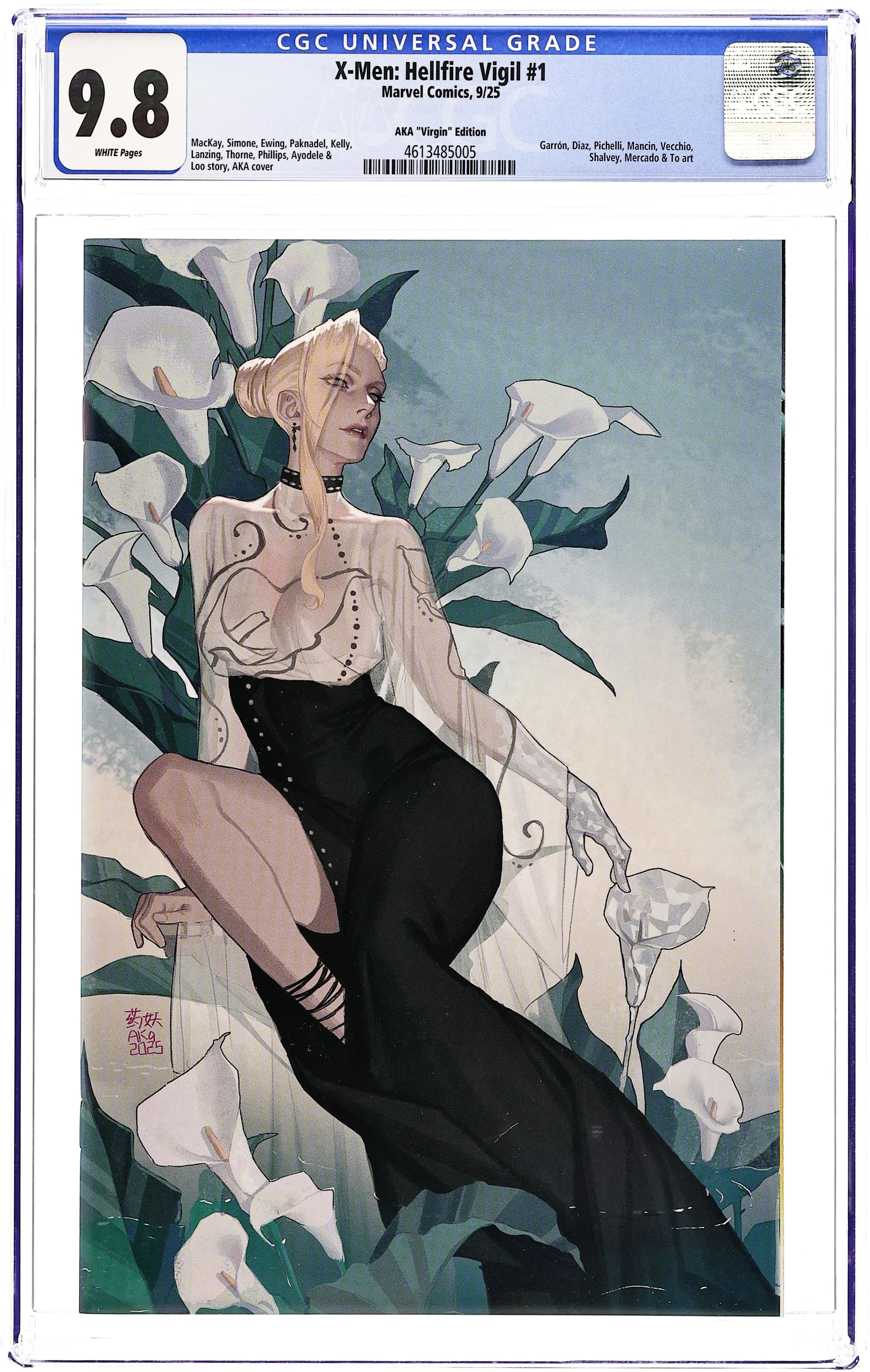 Limited 1 for 100 Retailer Incentive Variant Cover. Written by Jed MacKay and Various. Art by Netho Diaz and Various. Cover by AKA. One year ago, at the final Hellfire Gala, the dream of a unified mutant nation was forever shattered by a cowardly sneak attack by anti-mutant forces. To mark the moment and to proclaim loudly and strongly to all concerned that mutantkind still stands, the time has come for X-Men of all stripes to come together in solidarity and celebration. Written and drawn by the creators of the entire X-line, and featuring the meetings and moments that fans have been asking for since FROM THE ASHES began! A keystone moment marking the movement of one era into the next and setting up story threads that will play out across the X-line across the next year! 64 pages, full color. Rated T+ Cover price $7.99.