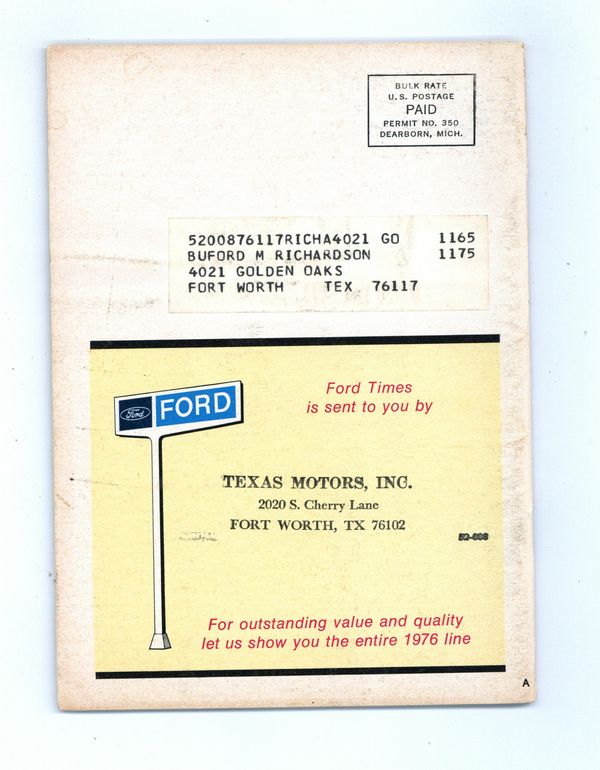 Published Nov 1975 by Ford Motor Co..$8.00Vol. 68, No. 11 - November 1975. Promotional magazine from the Ford Motor Company. 5" x 7", 68 pages, B&W