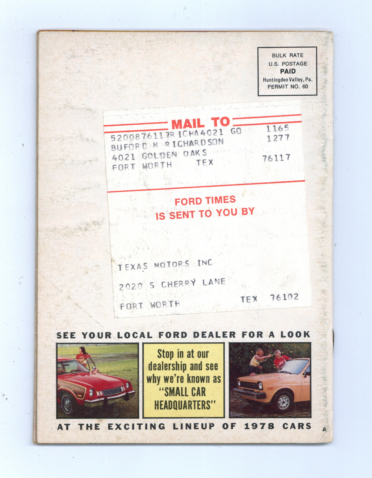 Published Dec 1977 by Ford Motor Co..$8.00Vol. 70, No. 12 - December 1977. Promotional magazine from the Ford Motor Company. 5" x 7", 68 pages, B&W