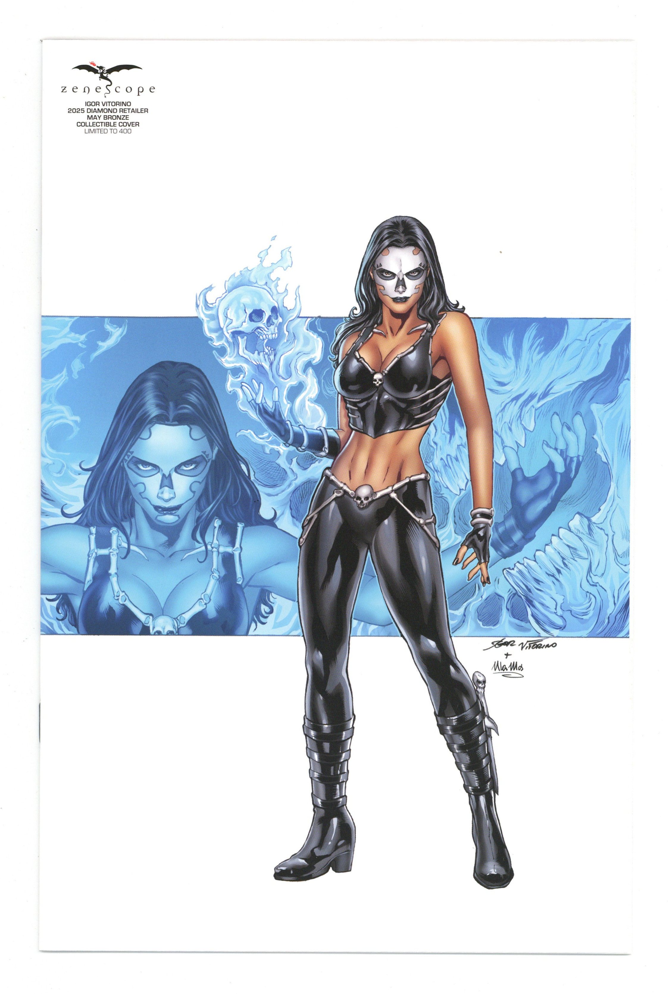 Published May 2025 by Zenescope Entertainment.$14.252025 Diamond Retailer May Bronze Collectible Cover by Igor Vitorino - Limited to 400 copies. Written by Joe Brusha. The Hat Man One of the oldest mysteries of the universe is, 'Where do dreams and nightmares come from?' Something even more concerning is the place that lies between the realities, connecting the waking and dreaming worlds, when the dreamer's body freezes in a sleeping paralysis -- and we are stuck in the world where the Hat Man dwells! Some call it superstition, others a disruption in the neural pathways of the brain. But those who understand the truth know The Hat Man is not a figment of the imagination, nor is he a tale to be told. The Hat Man is primordial. He is something to be feared. And if you're unlucky-The Hat Man is coming for you next! 32 pages, full color. Rated M Cover price $10.00.