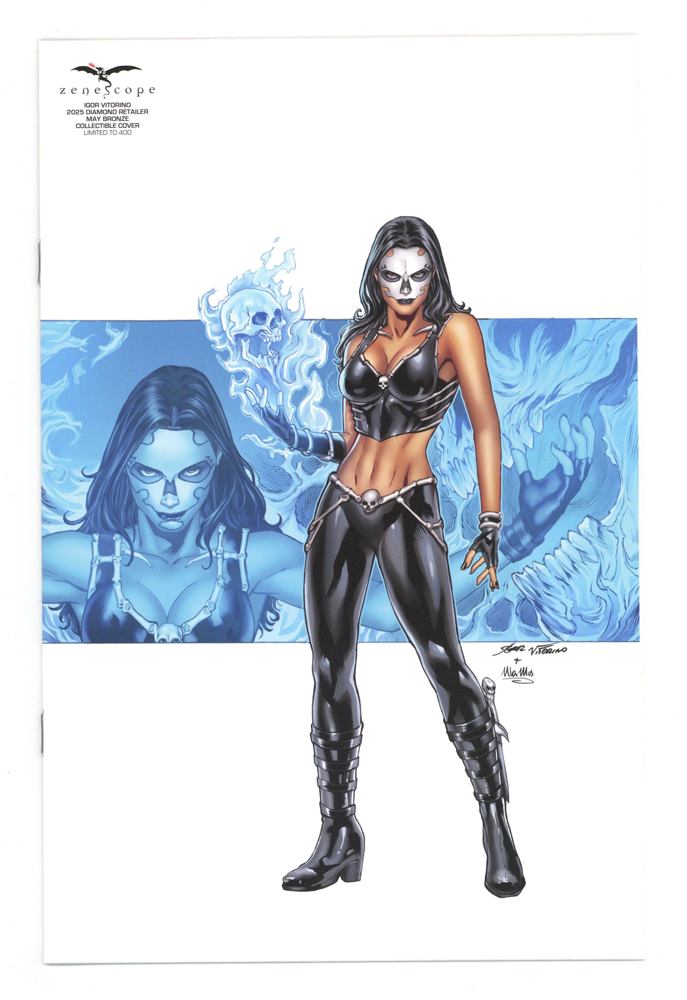 2025 Diamond Retailer May Bronze Collectible Cover by Igor Vitorino - Limited to 400 copies. Written by Joe Brusha. The Hat Man One of the oldest mysteries of the universe is, 'Where do dreams and nightmares come from?' Something even more concerning is the place that lies between the realities, connecting the waking and dreaming worlds, when the dreamer's body freezes in a sleeping paralysis -- and we are stuck in the world where the Hat Man dwells! Some call it superstition, others a disruption in the neural pathways of the brain. But those who understand the truth know The Hat Man is not a figment of the imagination, nor is he a tale to be told. The Hat Man is primordial. He is something to be feared. And if you're unlucky-The Hat Man is coming for you next! 32 pages, full color. Rated M Cover price $10.00.