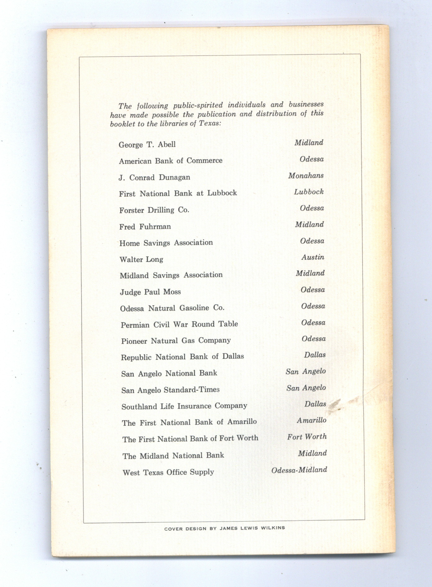 Published Jan 1962 by Texas Civil War Centennial Commission.$16.00- Staple rust: Slight.