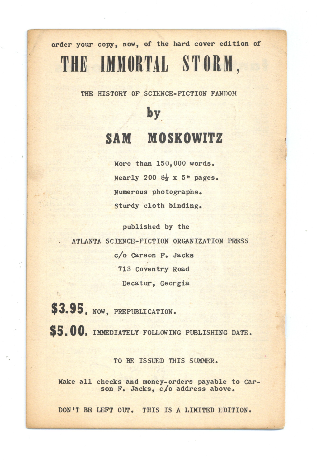 Published May 1953 by Gus Willmorth.$18.00- Staple rust: Moderate.