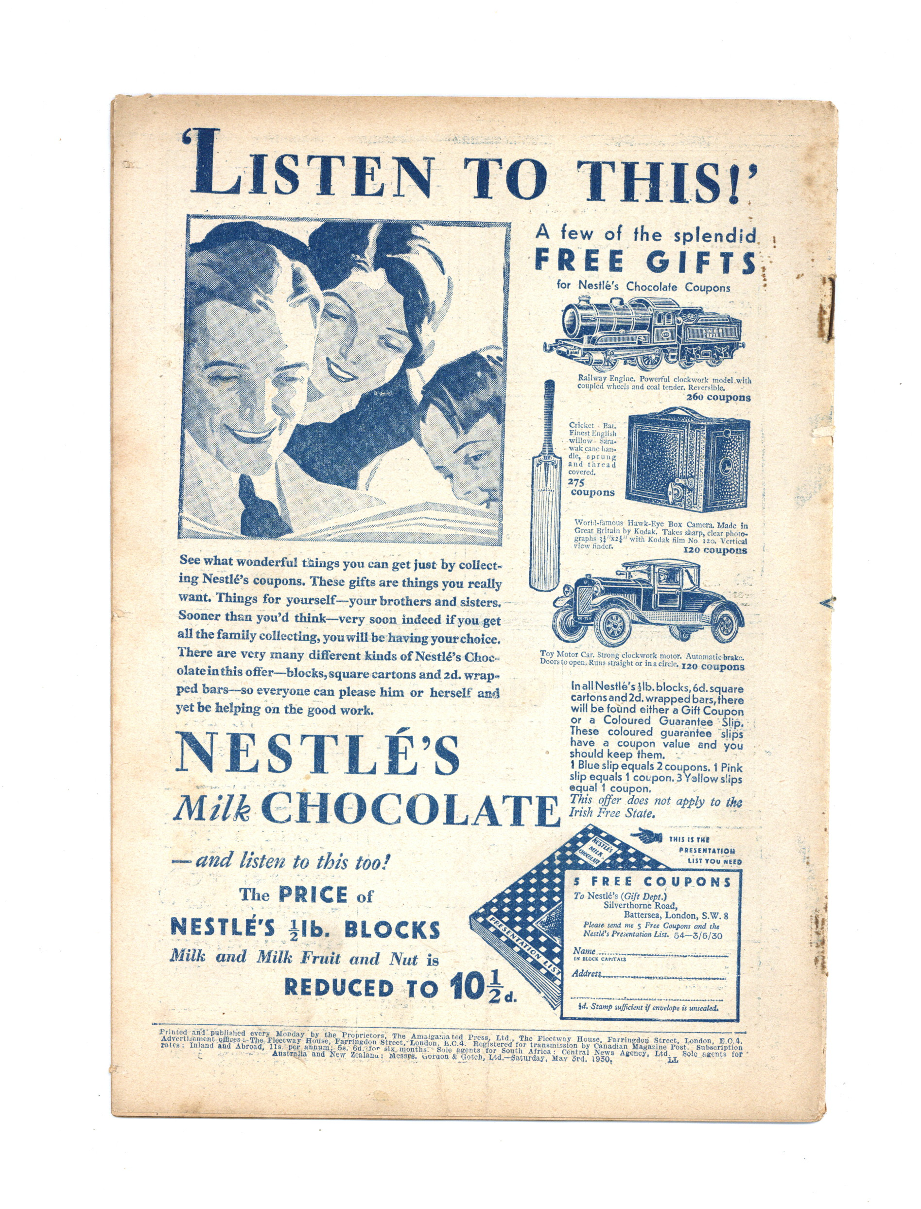 Published May 1930 by Amalgamated Press.$12.00- Staple rust: Moderate.