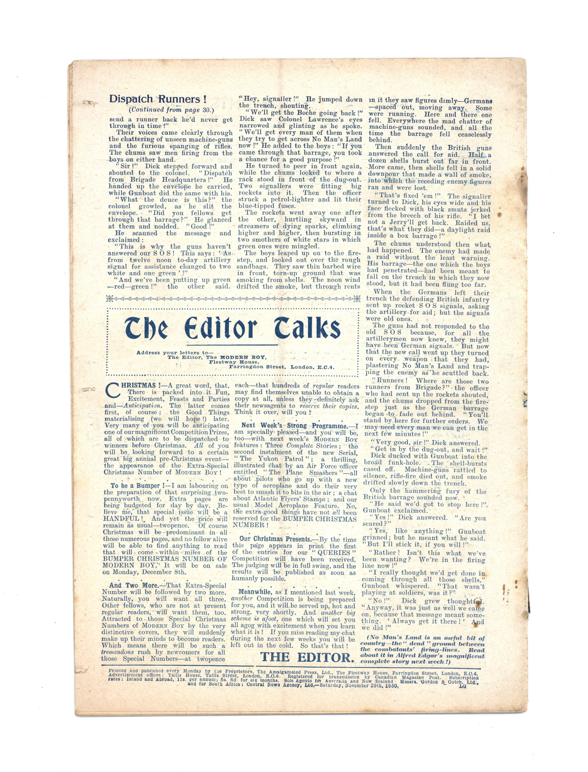The Modern Boy was a British weekly known for featuring the works of W.E. Johns, creator of Biggles, pictorials, and hobbyist articles.