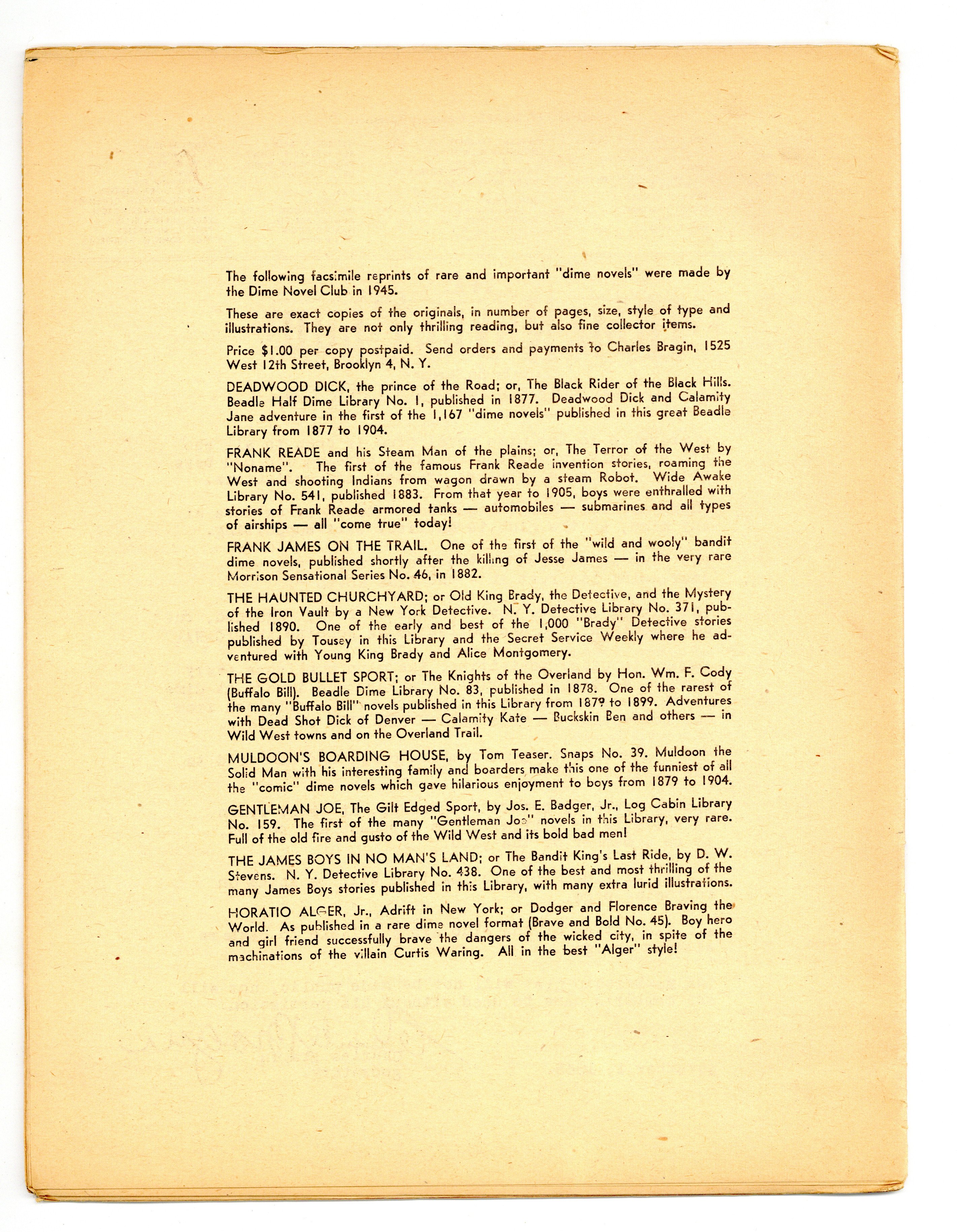 Published Nov 1945 by Dime Novel Club.$12.00- Spine split 5%.