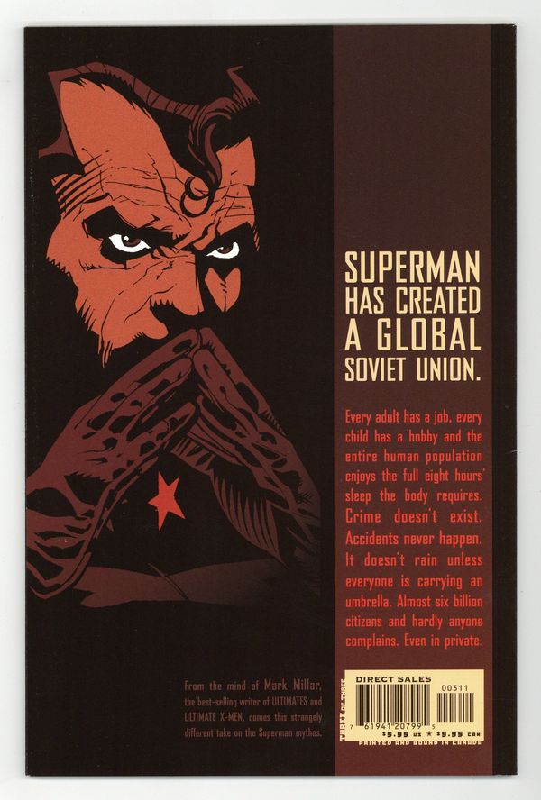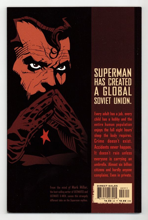 Tags: Superman$16.00WRITTEN BY MARK MILLAR; ART BY KILIAN PLUNKETT AND WALDEN WONG; COVER BY DAVE JOHNSON ELSEWORLDS. In stores June 25. The long-awaited Superman Elseworlds series reaches a thrilling conclusion! You won't believe your eyes as Russia's hero, Superman, battles the American superpowers led by President Luthor in a fight for the freedom of the world! Don't miss the finale to the epic series that was years in the making! Prestige Format. FC, 48 PG. (3 OF 3) $5.95 Cover price $5.95.