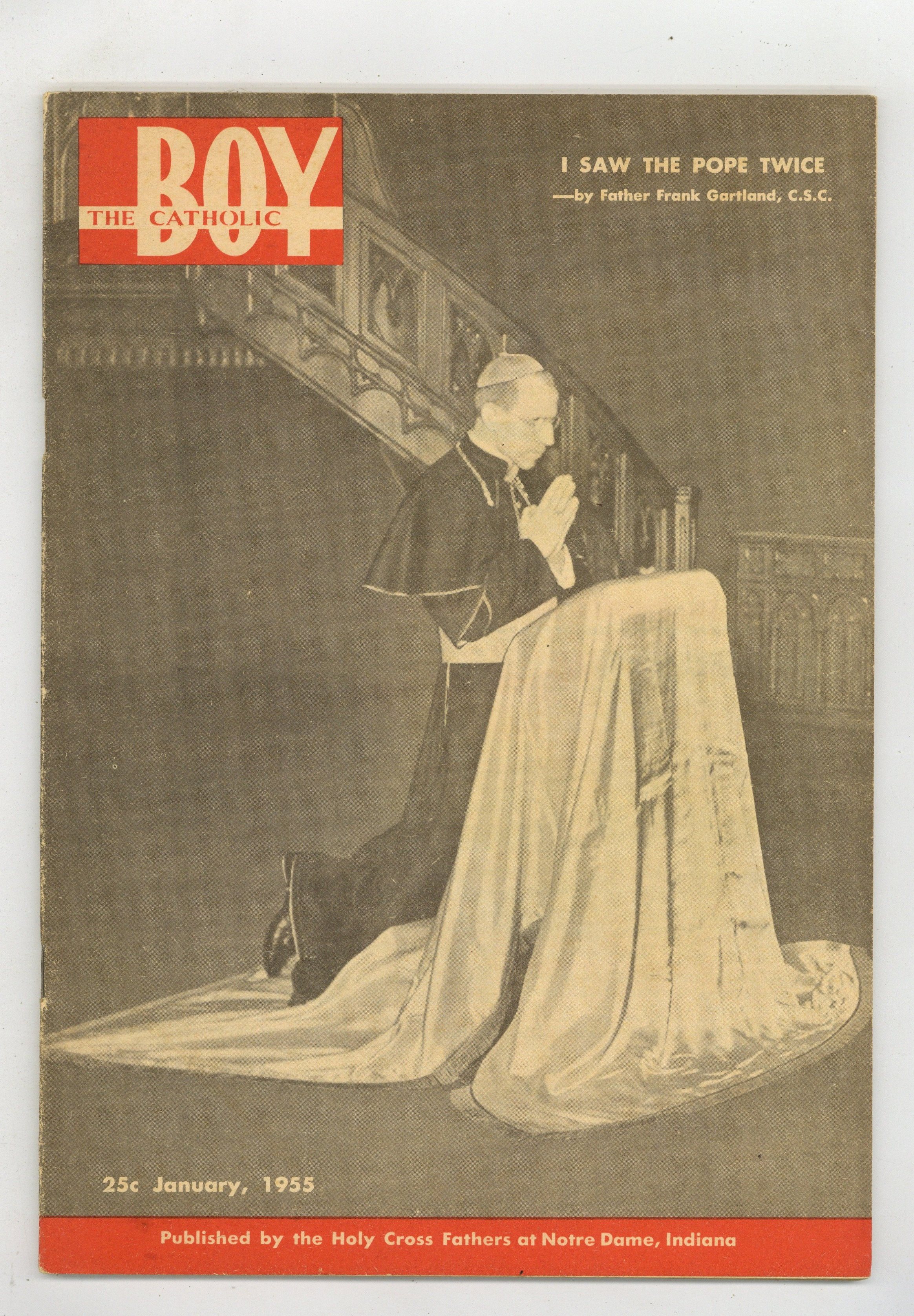 Vol 23 No. 5 - January 1955. Published by the Holy Cross Fathers of Notre Dame, Indiana. Stories by Gil Farley, Jack Connor, Joel Cohen, Rev. Michael J. O'Connor, Rev. Frank E. Garland, John J. Ryan, Rev. Peter Lappin, Frank L. Remington, Joe Dever, Ted Drake, Frank Lehy, Rev, Thomas A. Lahey, Chick Evans, and Rev. James Galvin. Art by Bill Lackey, Paul Grout, and Joe Keena. A collection of articles, short stories, and some comic stories focusing on morality stories for the youth and the Catholic faith. 7" X 10". 48 pages. B&W with some color. Cover price $0.25.