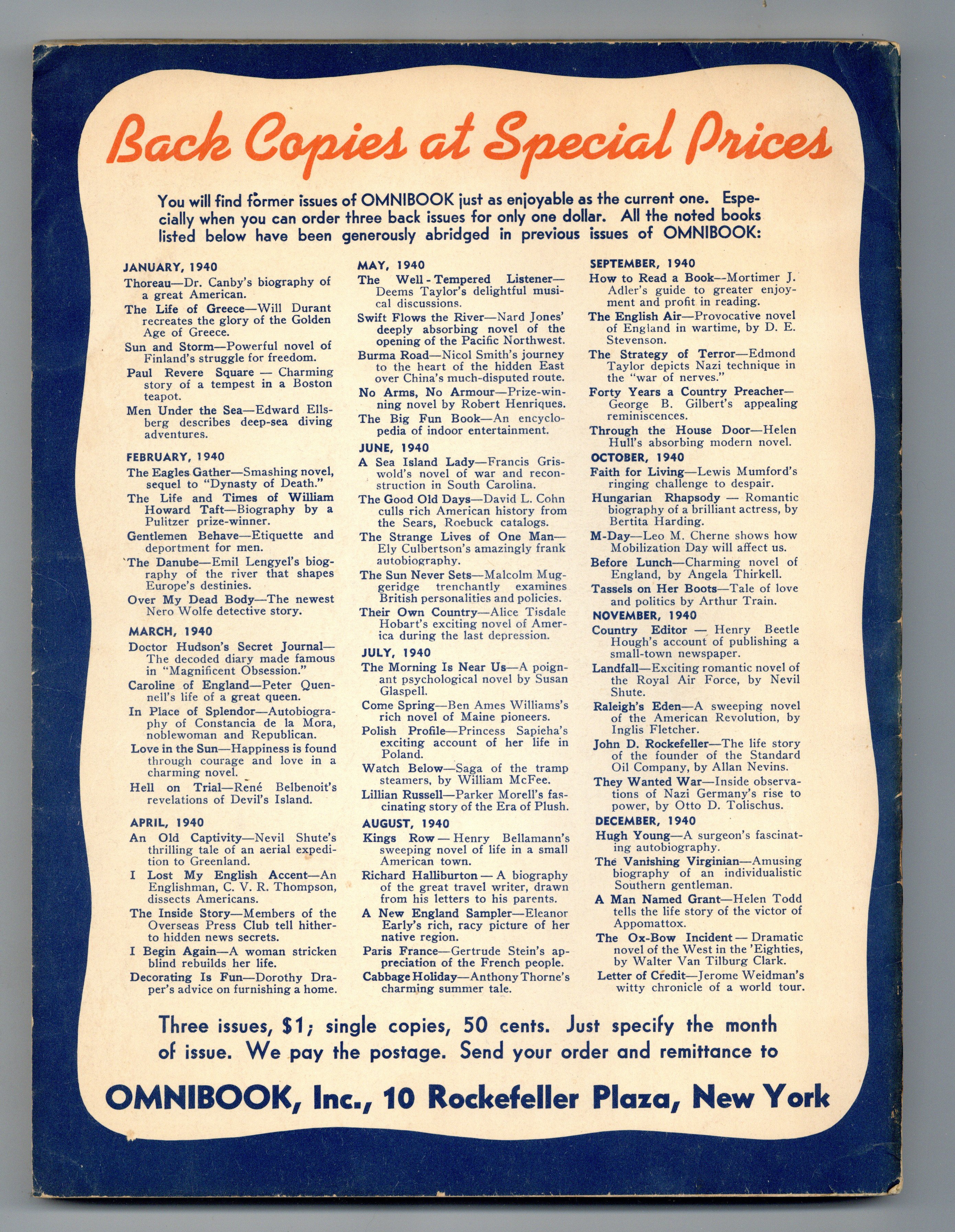 Monthly magazine that featured abridgements of best-selling books. 8.5" x 11", 160 pages, B&W. Cover price $0.50.