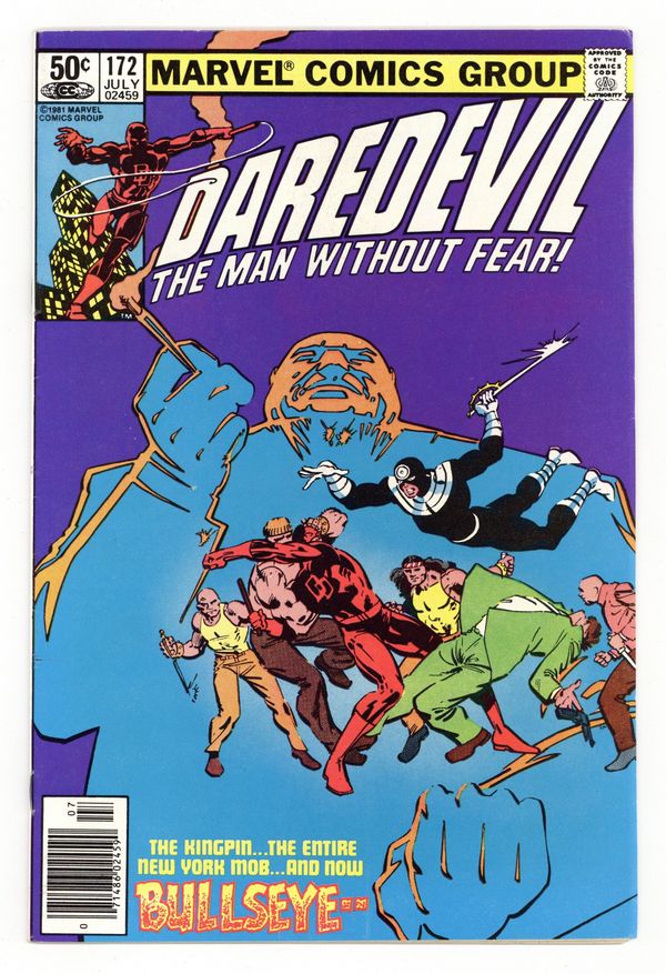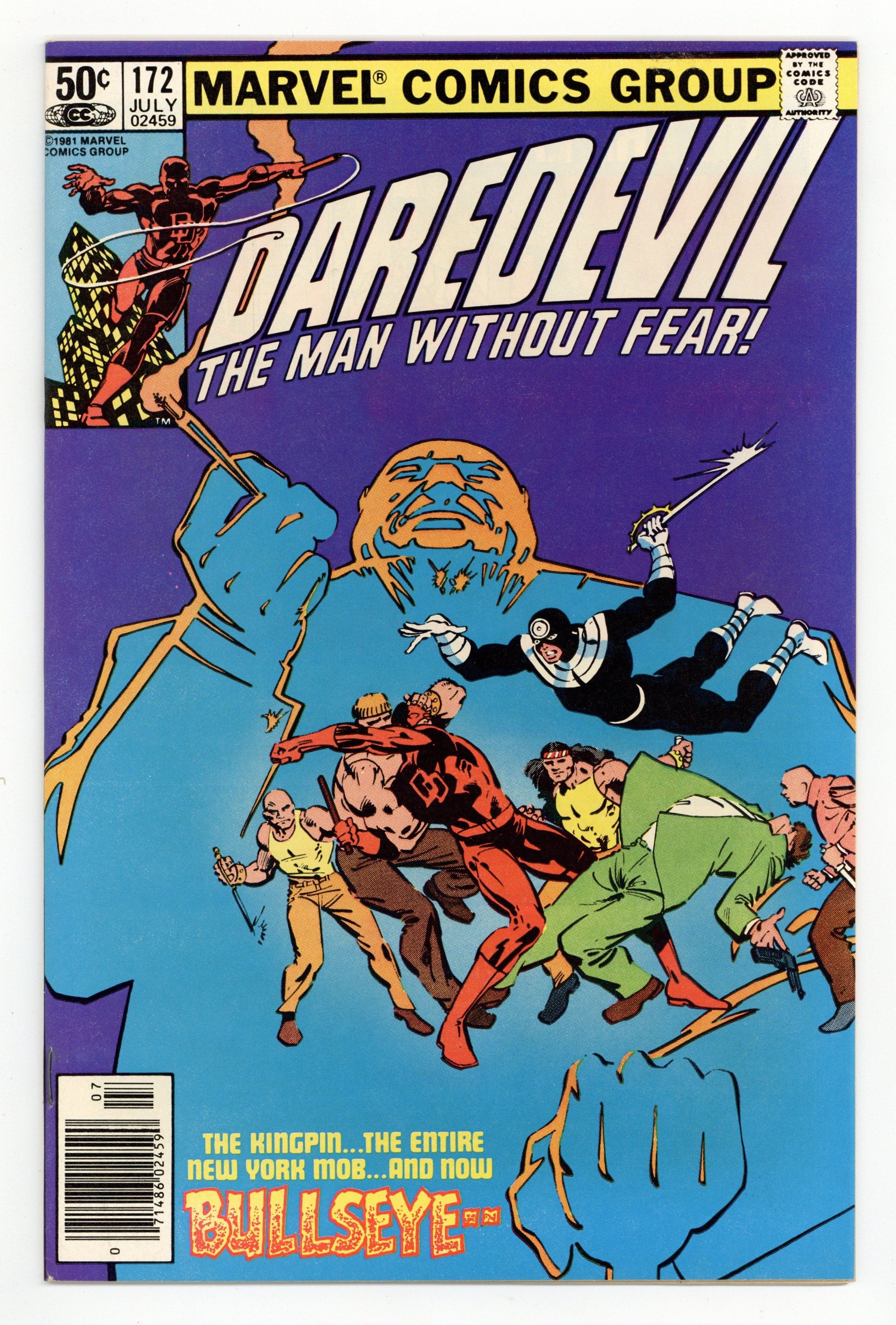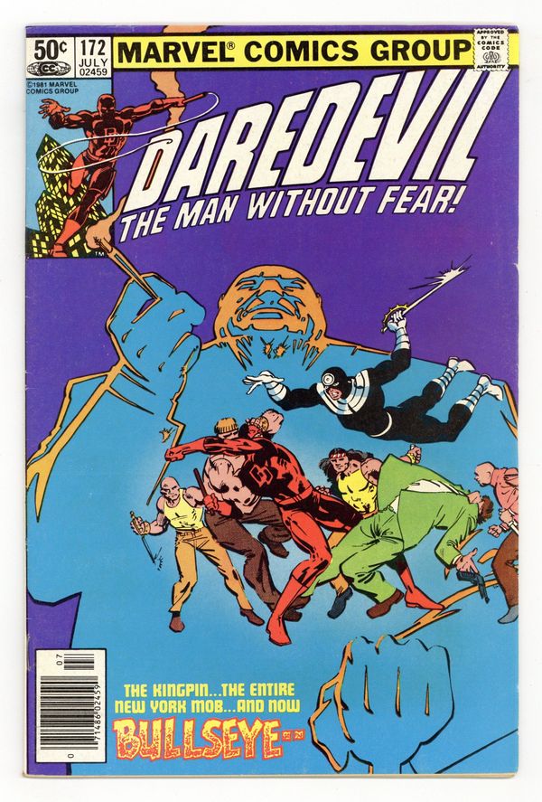 Newsstand Edition. Cover pencils by Frank Miller, inks by Klaus Janson. Gang War!, script and pencils by Frank Miller, inks by Klaus Janson; Thinking his wife is dead, Kingpin takes control of the mob and hires Bullseye as his assassin; DD comes calling and takes Bullseye down but leaves the Kingpin in power to rebuild his organization. 32 pgs. Cover price $0.50. Cover price $0.50.