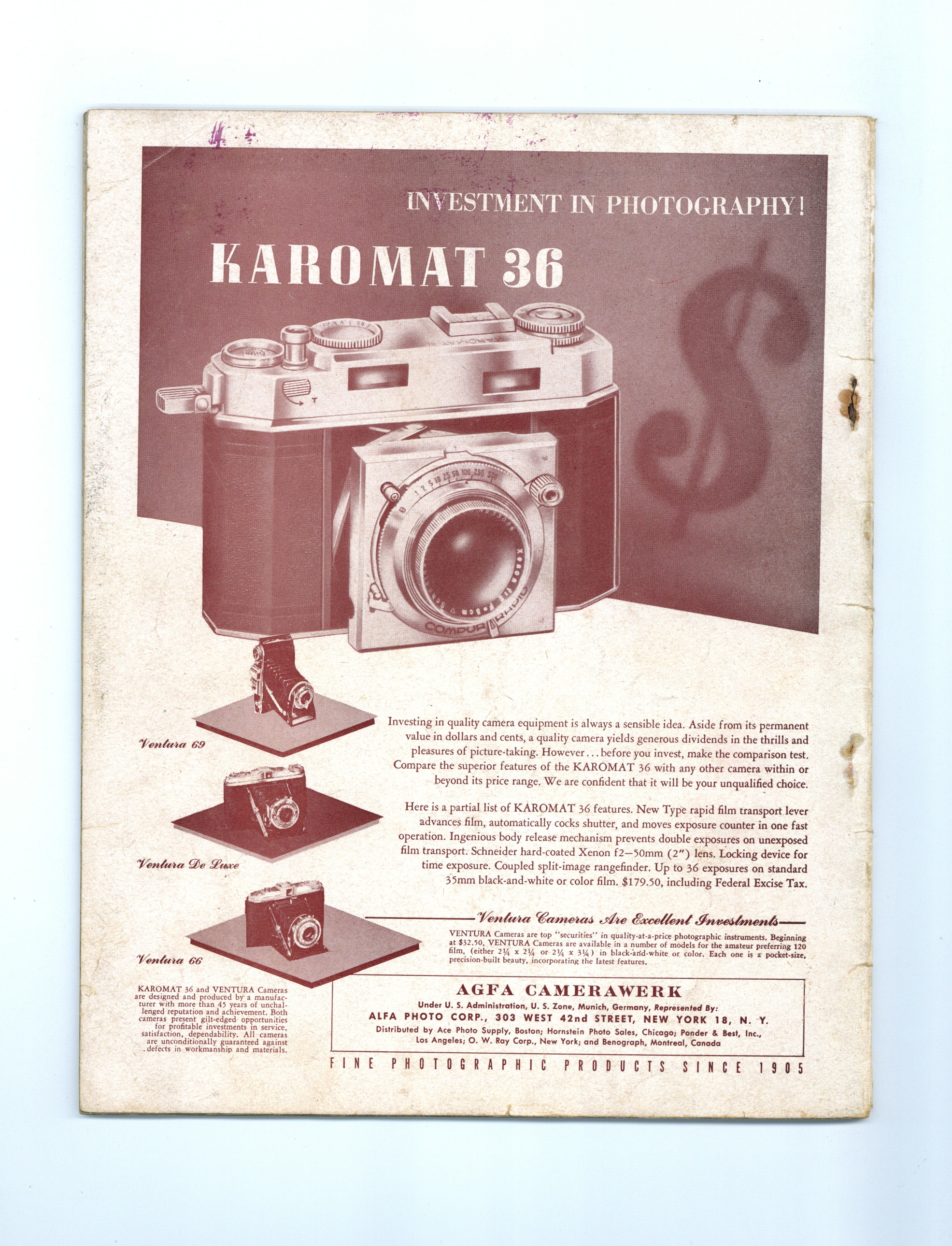 Volume 1, Issue 1 - December 1950. Short-lived vintage magazine for creative photography enthusiasts, with articles, exposes, and black and white nude pictorials. 8.5" x 11", 68 pages, B&W. -MATURE READERS- Cover price $0.50.