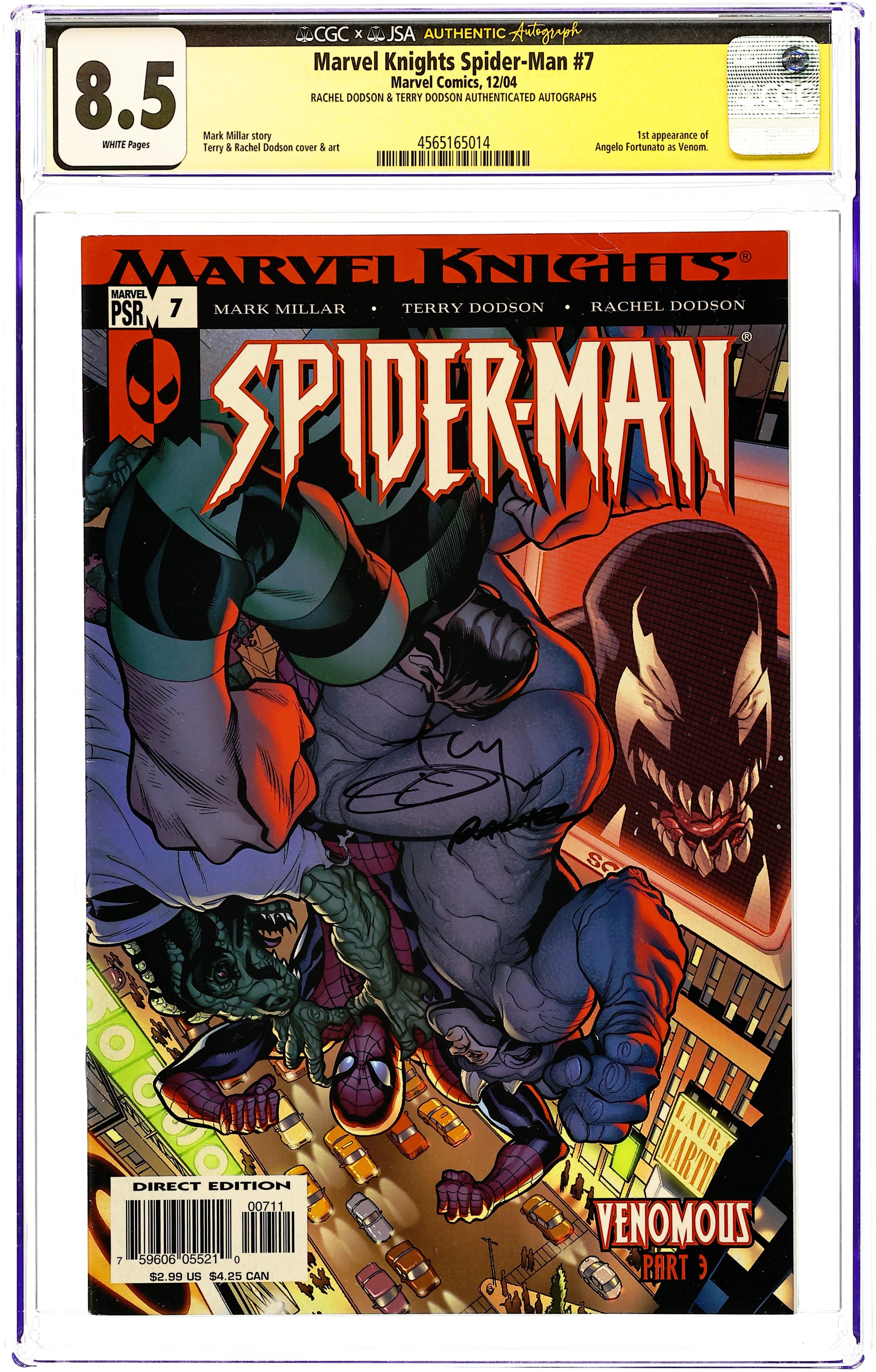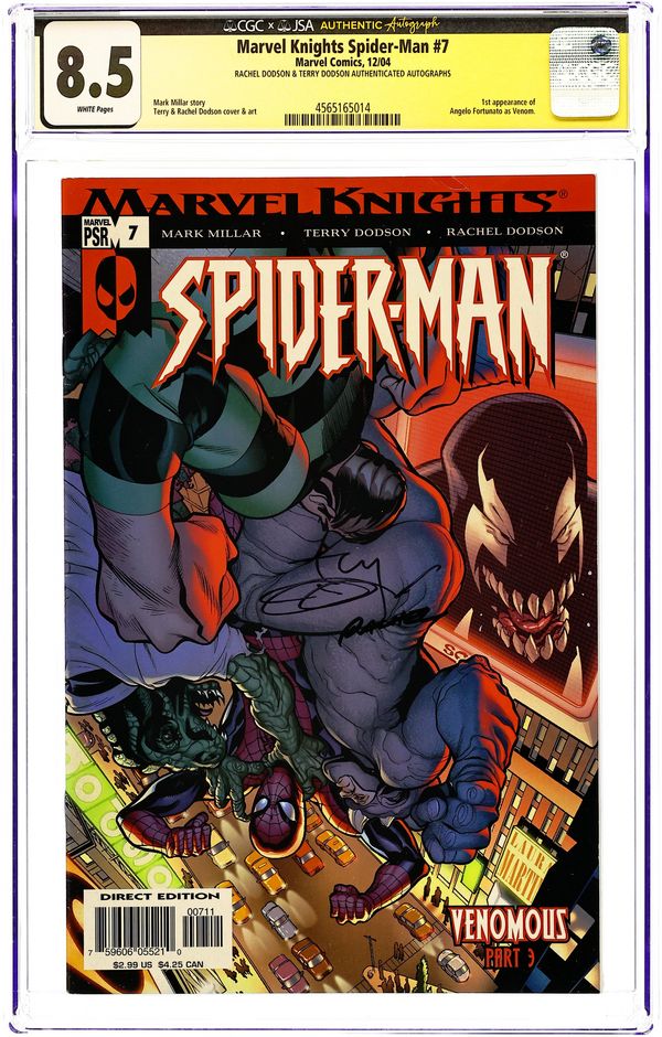 Written by MARK MILLAR Pencils & Cover by TERRY DODSON "VENOMOUS" PART 3 (OF 4) This month in the year's hottest release: Things get worse! Everyone's favorite symbiote is back ? as only Millar and superstar Terry Dodson could envision him. Hold on to your spit, there's a beatdown coming for at least one guy with a spider on his chest! 32 PGS./MARVEL PSR ...$2.99 UPC: 5960605521-00711 Cover price $2.99.