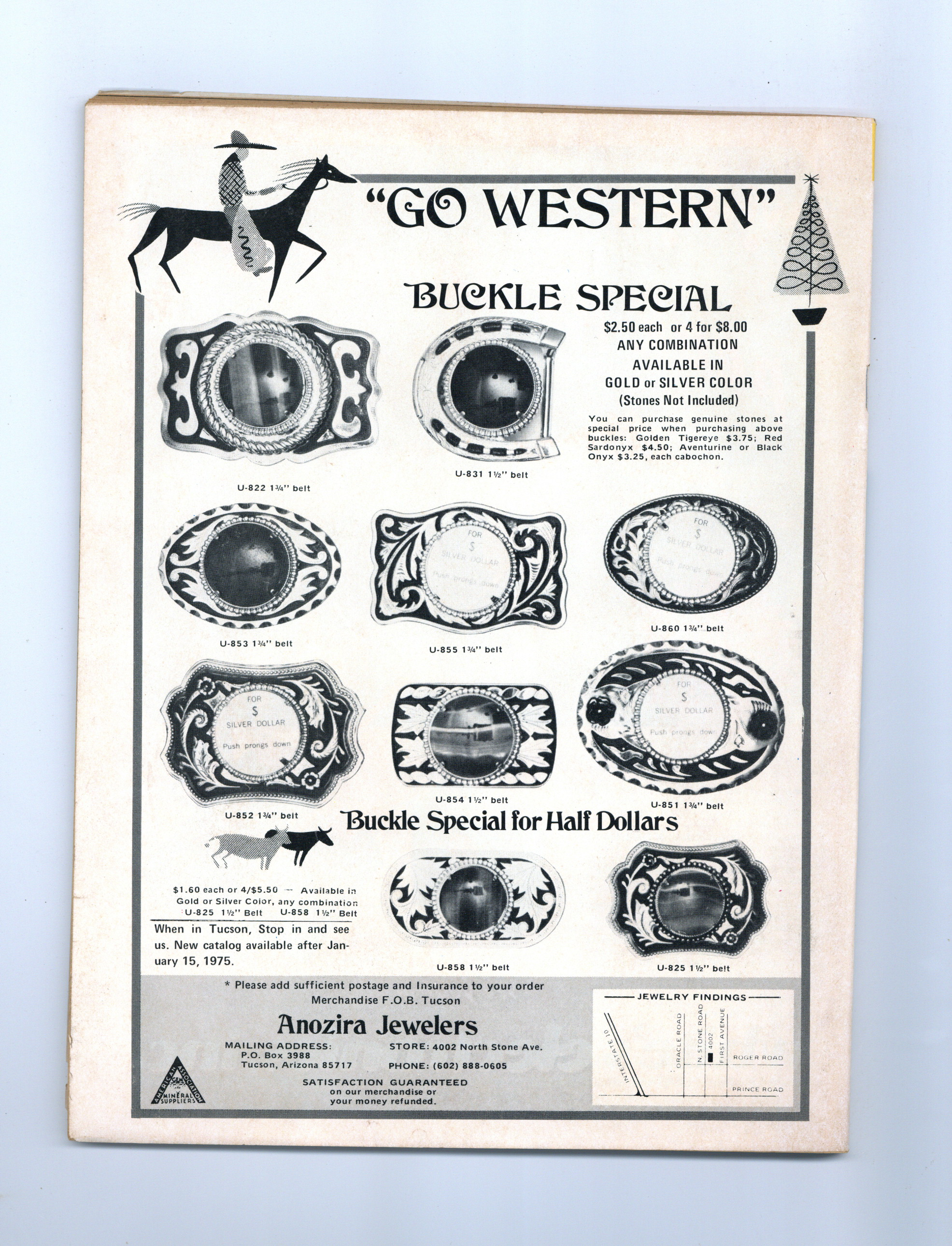 Published Feb 1975 by Behn-Miller Publishers, Inc..$16.00Vol. 7, No. 1 - January/February 1975. Western short stories. 8 1/4-in. x 10-in., 68 pages, B&W with illustrations and photos. Cover price $0.60.