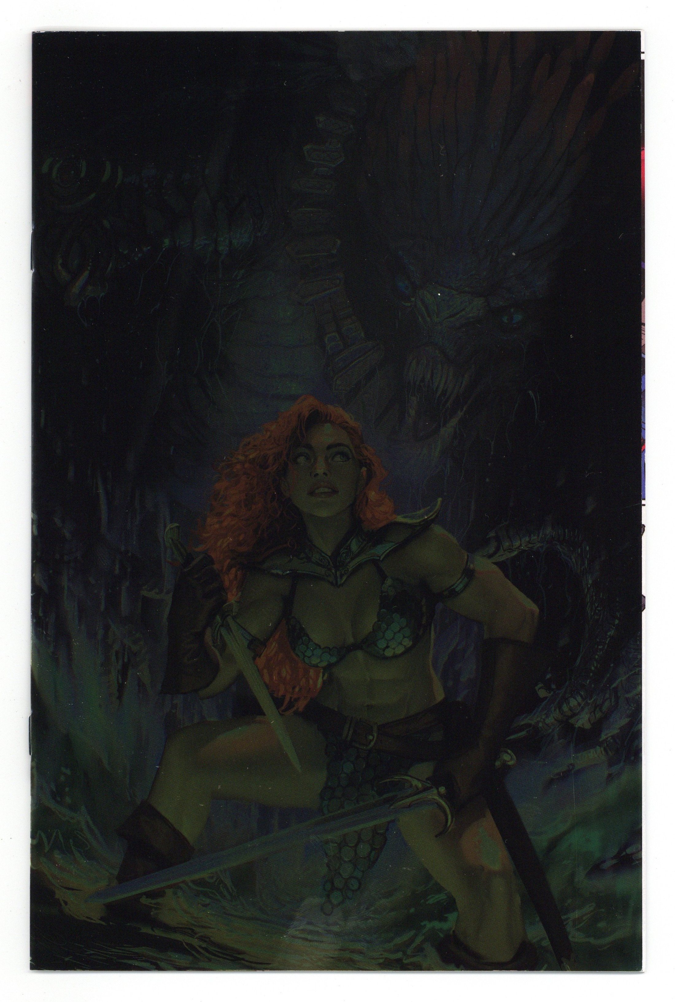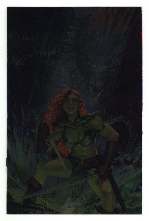 Tags: Red SonjaPublished Aug 2025 by Dynamite Entertainment.$29.99Written by Christopher Priest. Art by Alessandro Miracolo. Cover by Stjepan Sejic. BAPTISM OF FIRE! In a contest to decide the fate of the world, the ancient (and codependent) gods The Light and The Dark transport Maggie Sutherland, a young British clerk, from the year 2025 into the wilds of Hyboria, where she awakens transformed into the renowned Hyrkanian Bellatrix Red Sonja. Thrown headlong into a realm of gods and monsters, Maggie must quickly learn how to survive both the harsh environment and the constant threats posed by friends and foes alike as she struggles to find her way home. Legendary comics writer CHRISTOPHER PRIEST (Vampirella, Black Panther, Conan) and artist ALESSANDRO MIRACOLO rebuild the crimson-maned warrior from the inside out in Sonja Reborn - a riveting reinterpretation of her hero's journey that reveals what it might actually take for a single woman to survive in a brutal world of sorcery and barbarism! 32 pages, full color. Rated T Cover price $29.99.