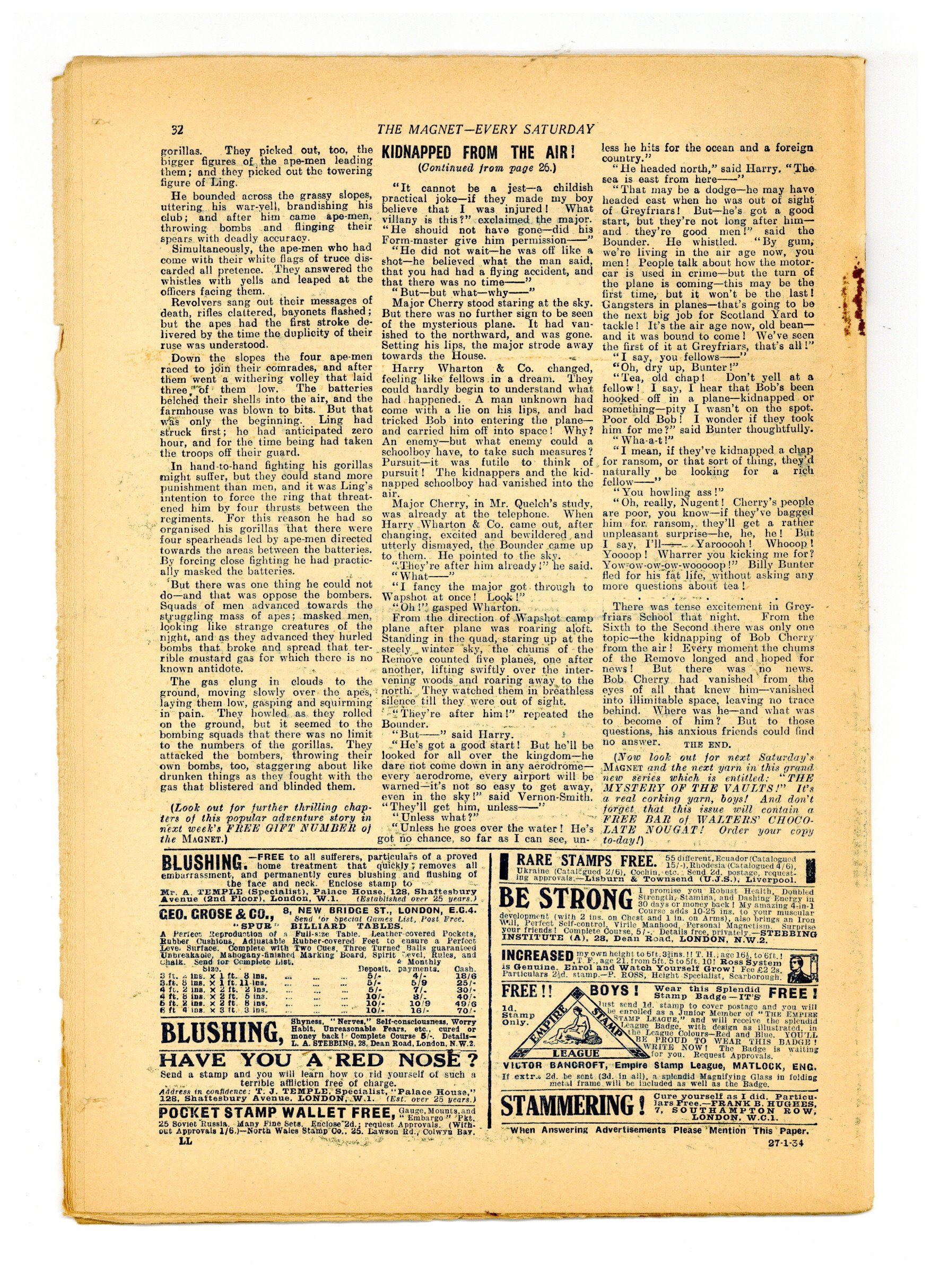 Published Jan 1934 by Amalgamated Press.$4.30- Staple rust: Extensive. Foreign edition: UK.