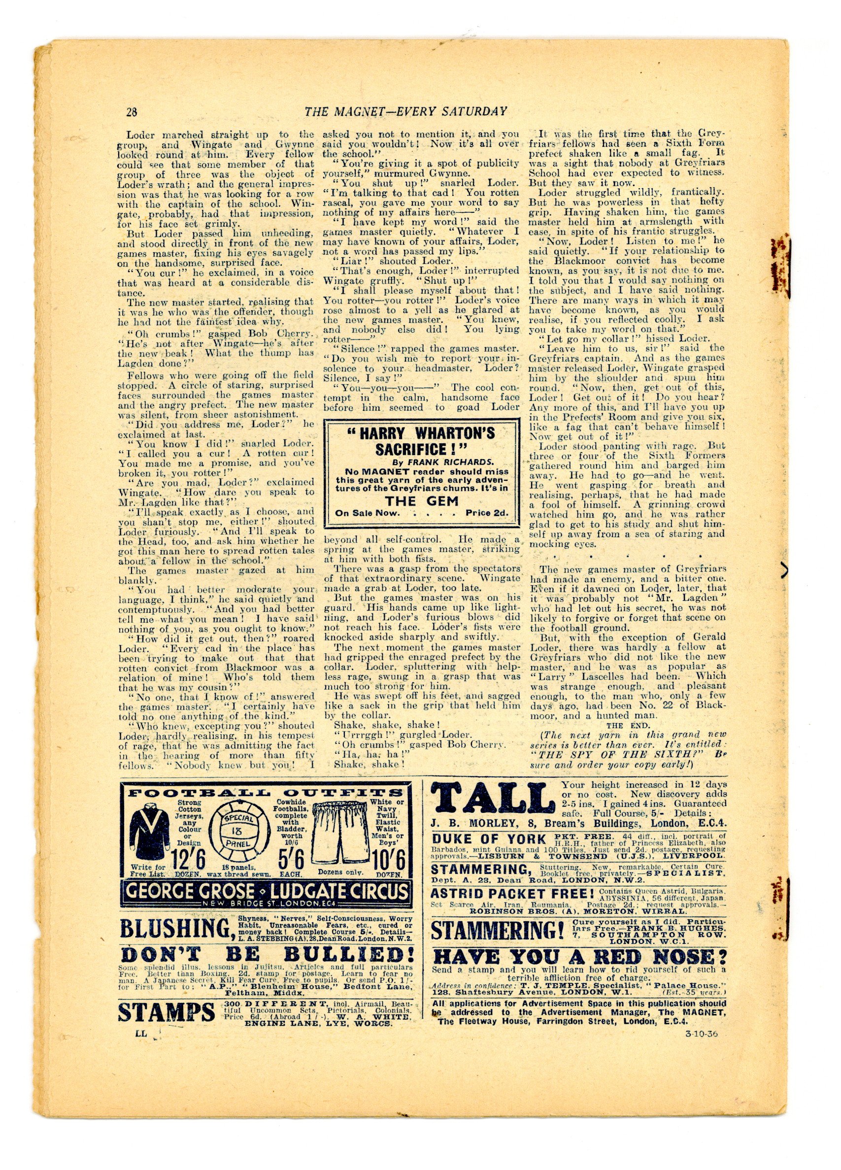 Published Oct 1936 by Amalgamated Press.$10.75- Staple rust: Slight. Foreign edition: UK.