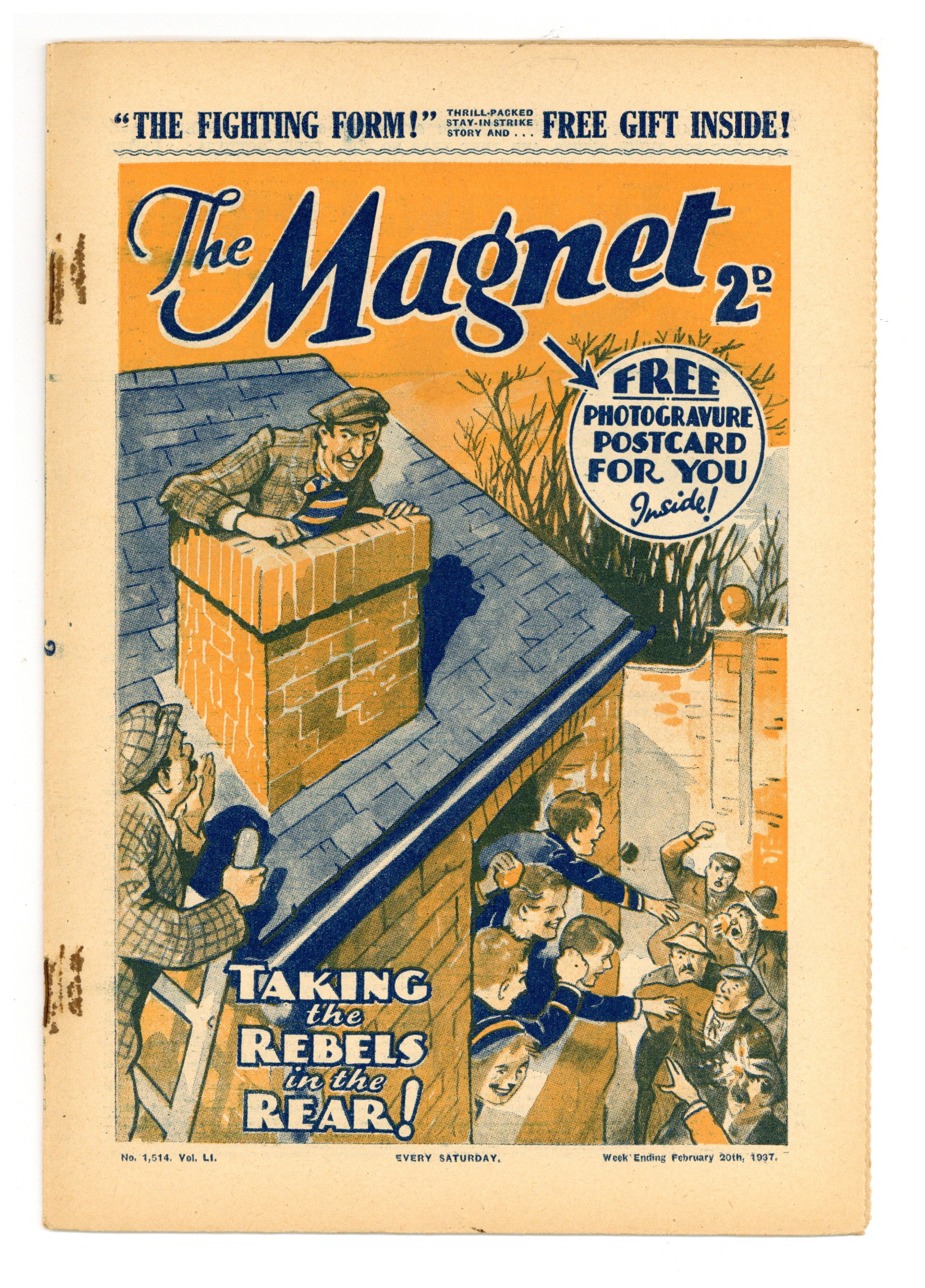 No. 1514 - February 20, 1937. Weekly British publication that ran for nearly 1,700 issues. Featured the anti-hero Billy Bunter of the Greyfriars School, along with serialized shorts. NOTE: This publication contains negative racial and cultural depictions. It reflects some attitudes of the era in which it was published that would not be acceptable today. 7.5" x 11", 28 pages, B&W.