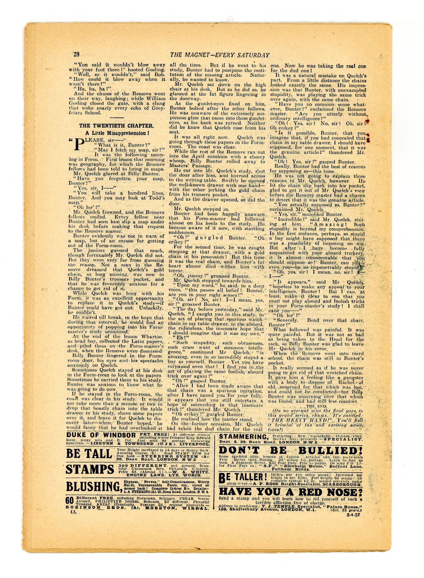 Published Apr 1937 by Amalgamated Press.$9.60- Staple rust: Extensive. Foreign edition: UK.