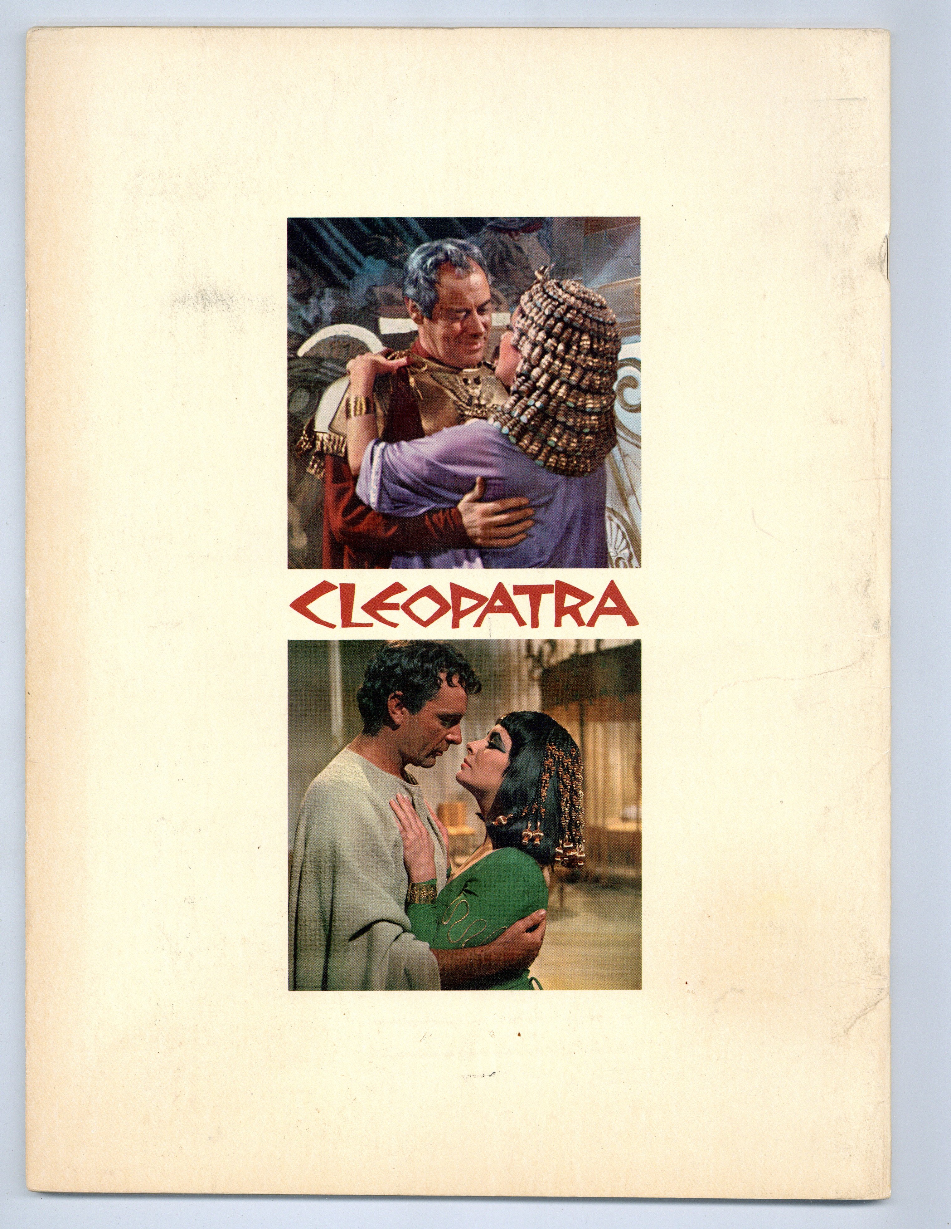 Published 1963 by National Publisher, Inc.$25.00Souvenir Program for the troubled and overblown production that almost bankrupted 20th Century Fox Studios. 9" x 12", 52 pages, PC/PB&W.