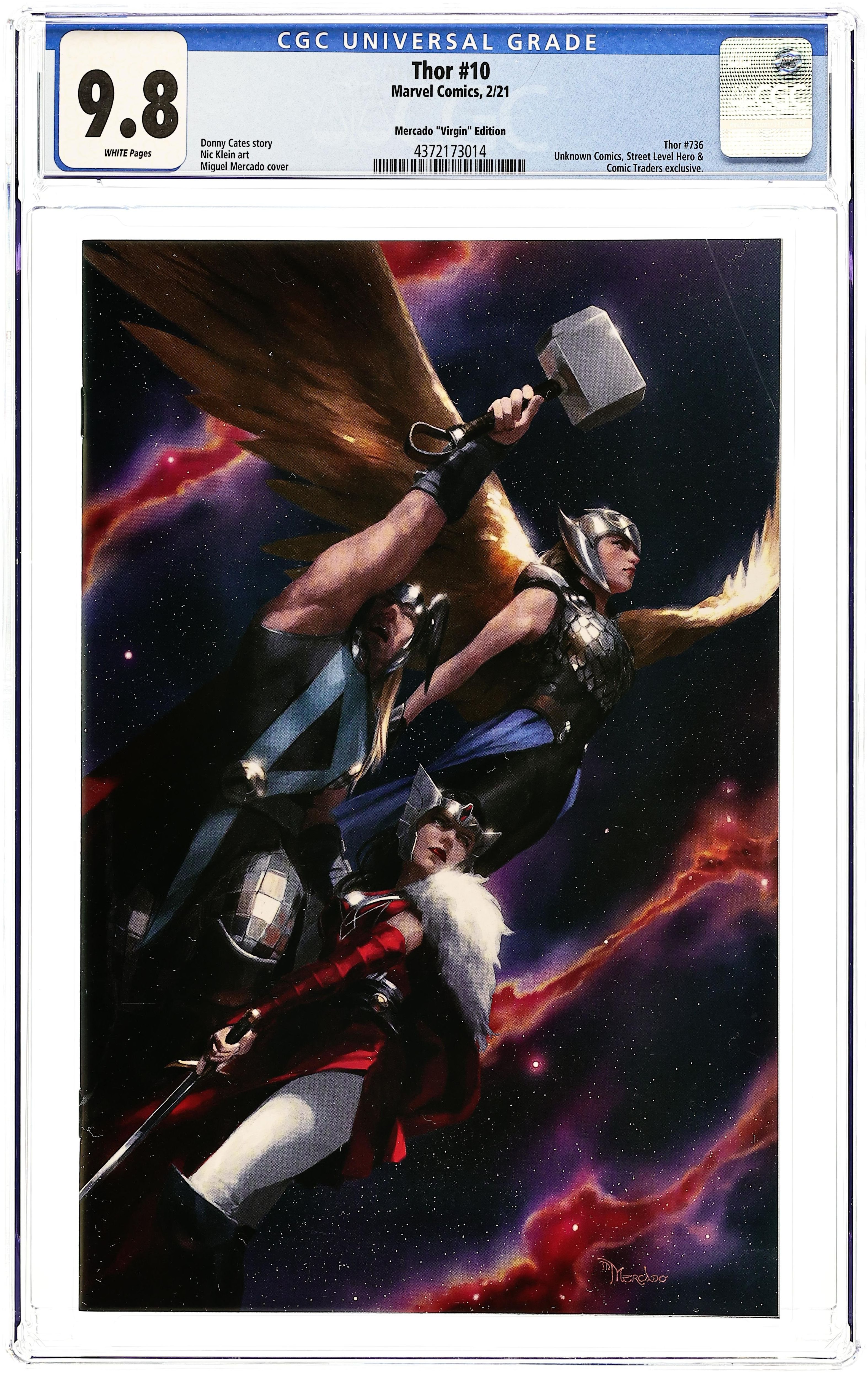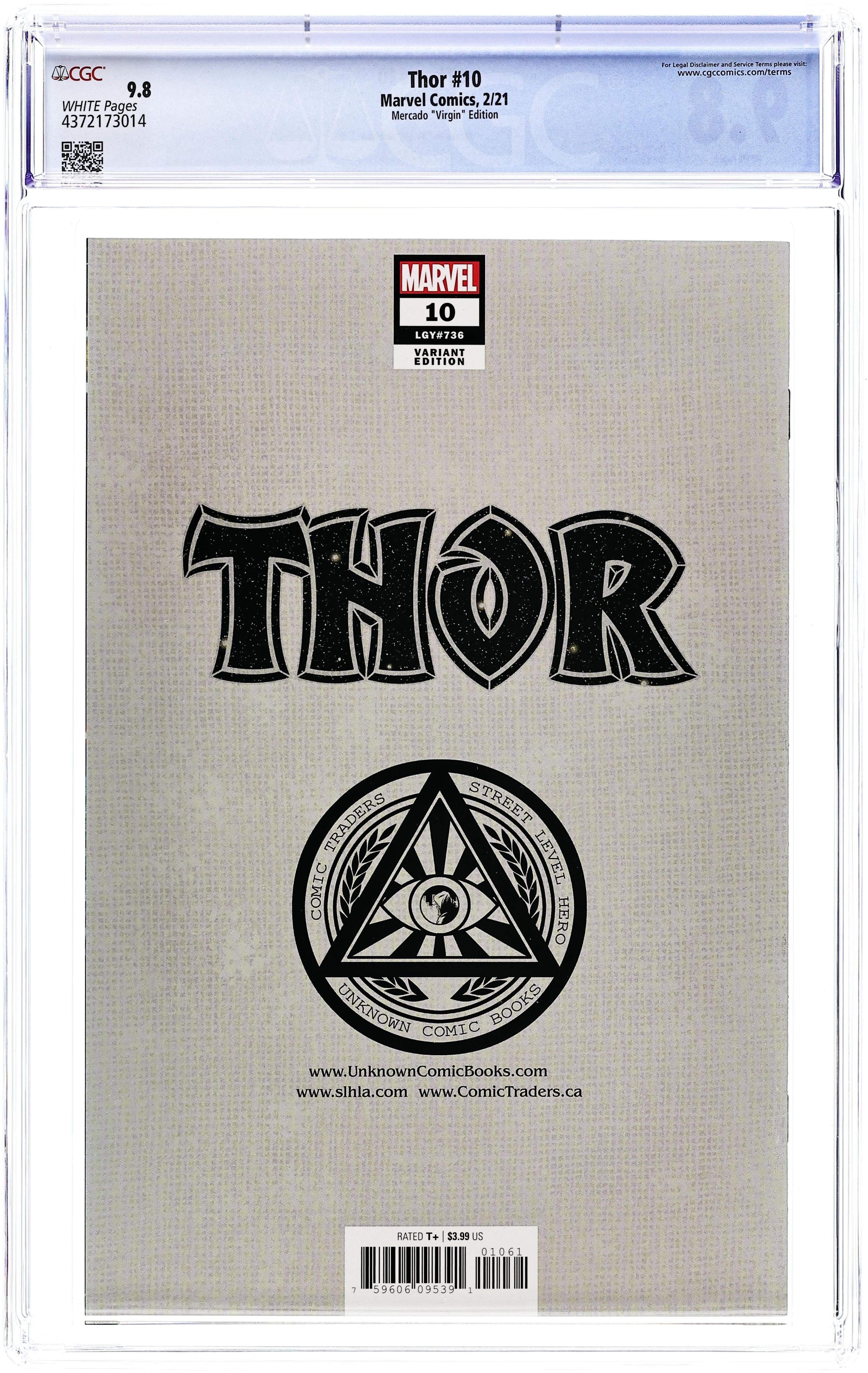 Comics Illuminati (Unknown Comics, Street Level Hero, and Comic Traders) Exclusive Virgin Cover by Miguel Mercado. Written by Donny Cates. Art by Nic Klein. THE DARK PRISON OF DONALD BLAKE! For years Doctor Donald Blake has wandered a land far from Midgard, the place he once thought home. Now he has returned to the Ten Realms - but it is not the place it was, nor he the man who once shared a body with a god. New terrors await in what is perhaps Donny Cates' darkest story yet! 28 pages, full color. Rated T+