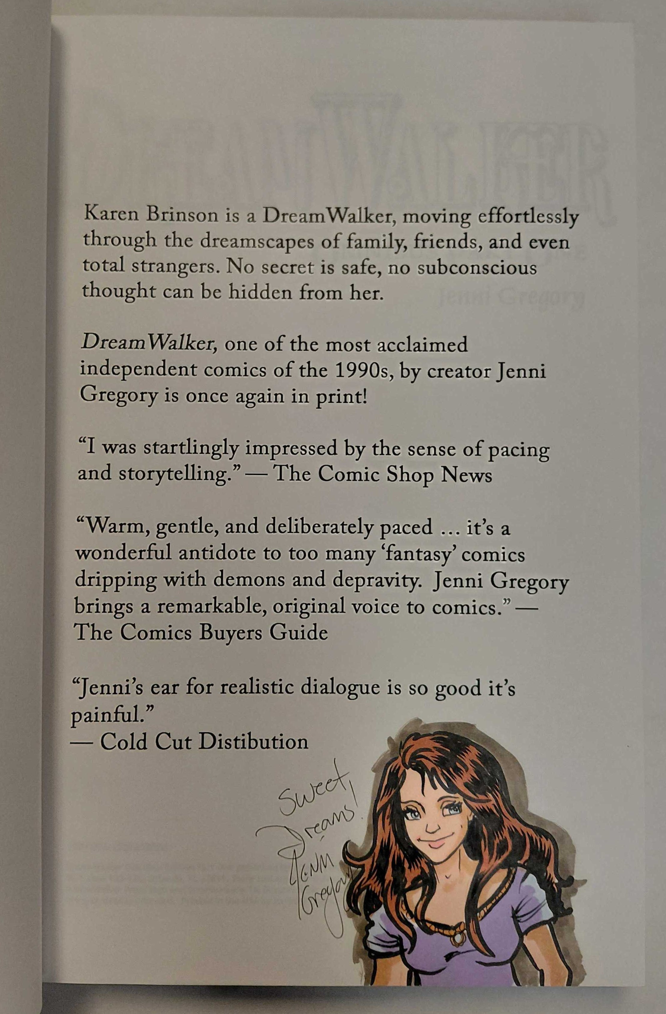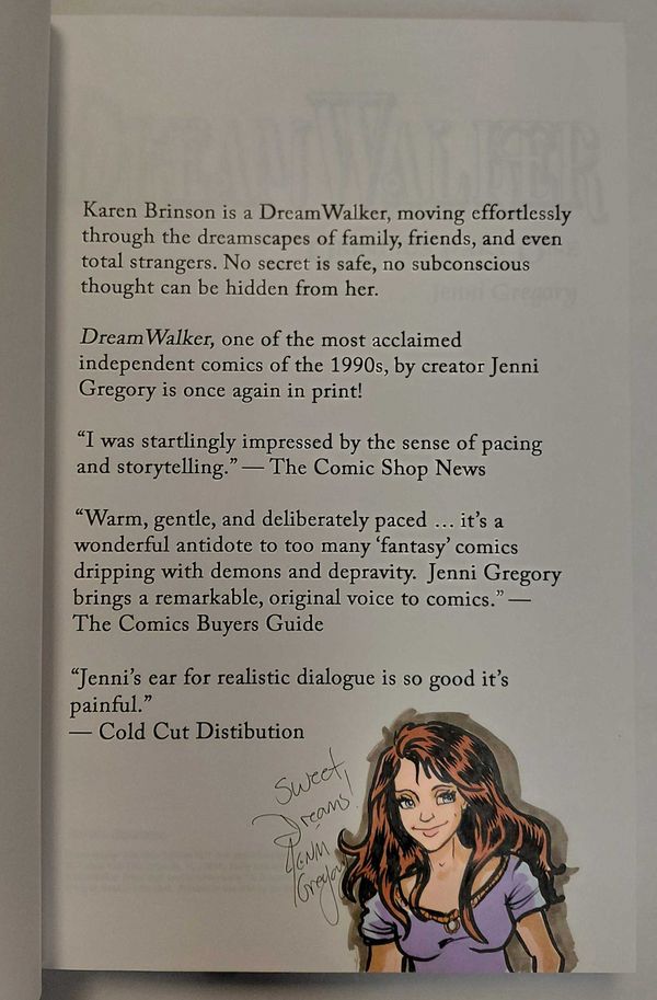 First printing. Karen Brinson is a dreamwalker, moving effortlessly through the dreamscapes of family, friends, and even total strangers. No secret is safe, no subconscious thought can be hidden from her. The DreamWalker Omnibus collects all 17 issues of Jenni Gregorys critically acclaimed DreamWalker series. 418 pages, B&W.