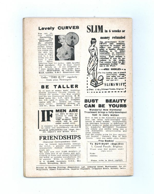 No. 6. Vintage British Men's magazine focusing on humorous cartoons, stories and anecdotes. 5-in. x 7-in, 32 pages, B&W.