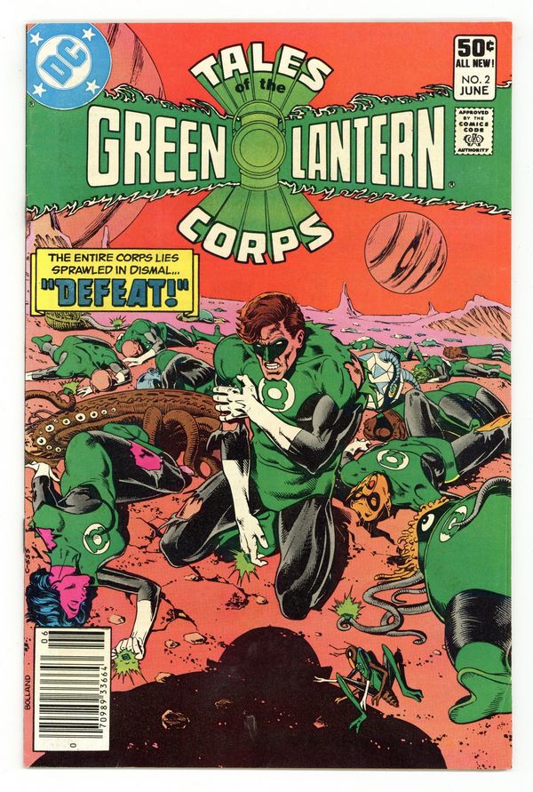 Newsstand Edition. 1st appearance of Nekron. Cover art by Brian Bolland. Defeat!, script by Mike W. Barr (plot) and Len Wein (script), pencils by Joe Staton (breakdowns) and Frank McLaughlin (finished art), inks by Frank McLaughlin; the Green Lanterns battle Krona's army as Krona intends to revert the universe to its Primal Atom state and destroy OA. 36 pgs. $0.50. Cover price $0.50.