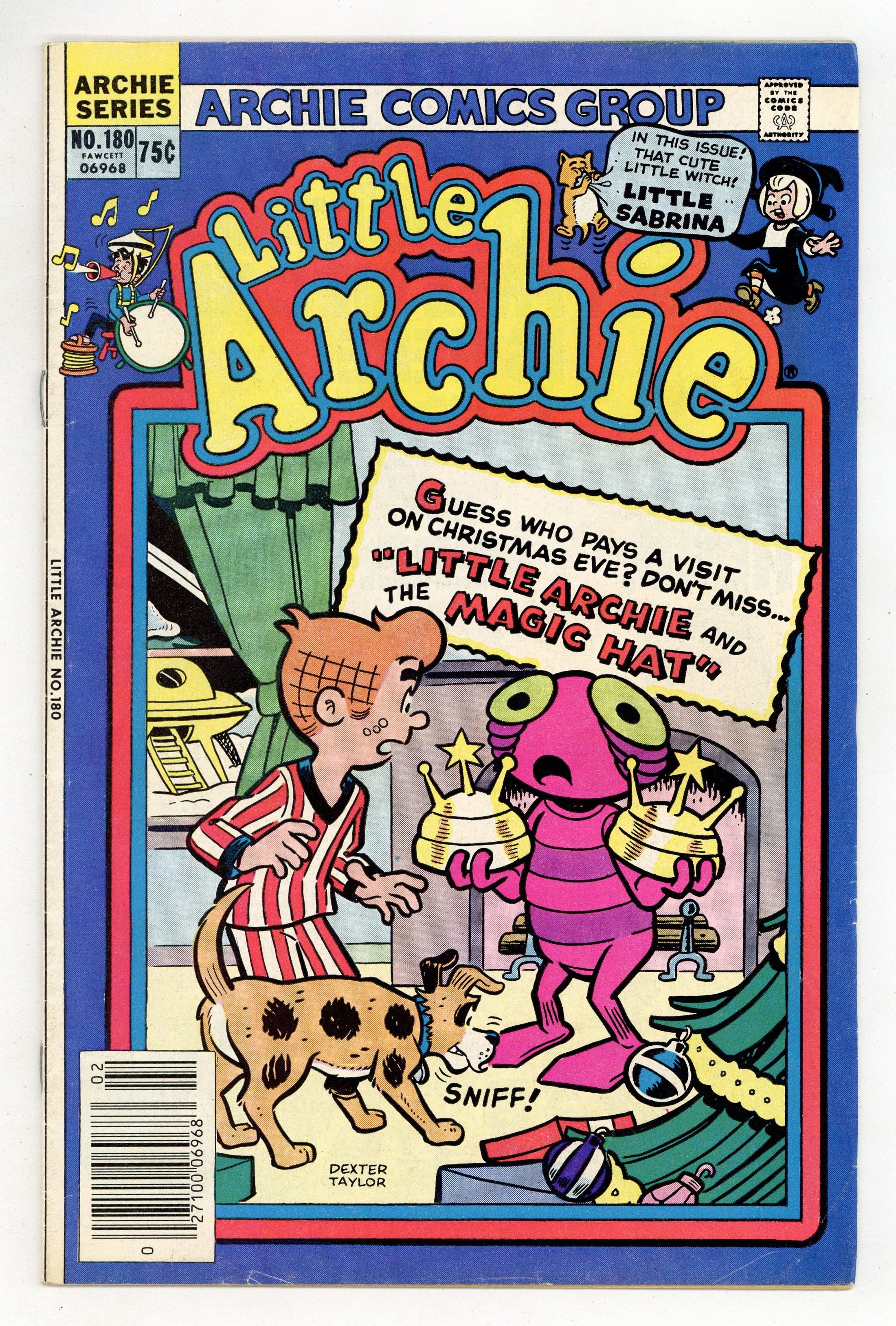 Tags: ArchiePublished Feb 1983 by Archie Publications.$6.70Canadian Price Variant. 75ยข cover price. Little Archie and the Magic Cap. Little Archie tries to explain Christmas to a visiting space alien. Jughead joins the school boxing team after knocking out school bully Fangs Fogarty. The gang gets musical for Christmas. Little Sabrina learns that her cat Salem is a famous nursery rhyme character, and he still wants his mittens. Stories and art by Dexter Taylor. Plus Lil Jinx by Joe Edwards. 32 pages, full color. Cover price $0.75.