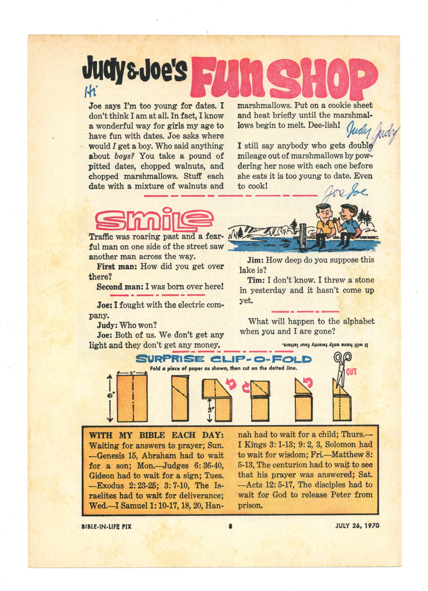 Published Jul 1970 by David C. Cook Publishing.$18.00July 26, 1970. Christian comic book. 6" x 8.75", 8 pages, B&W.