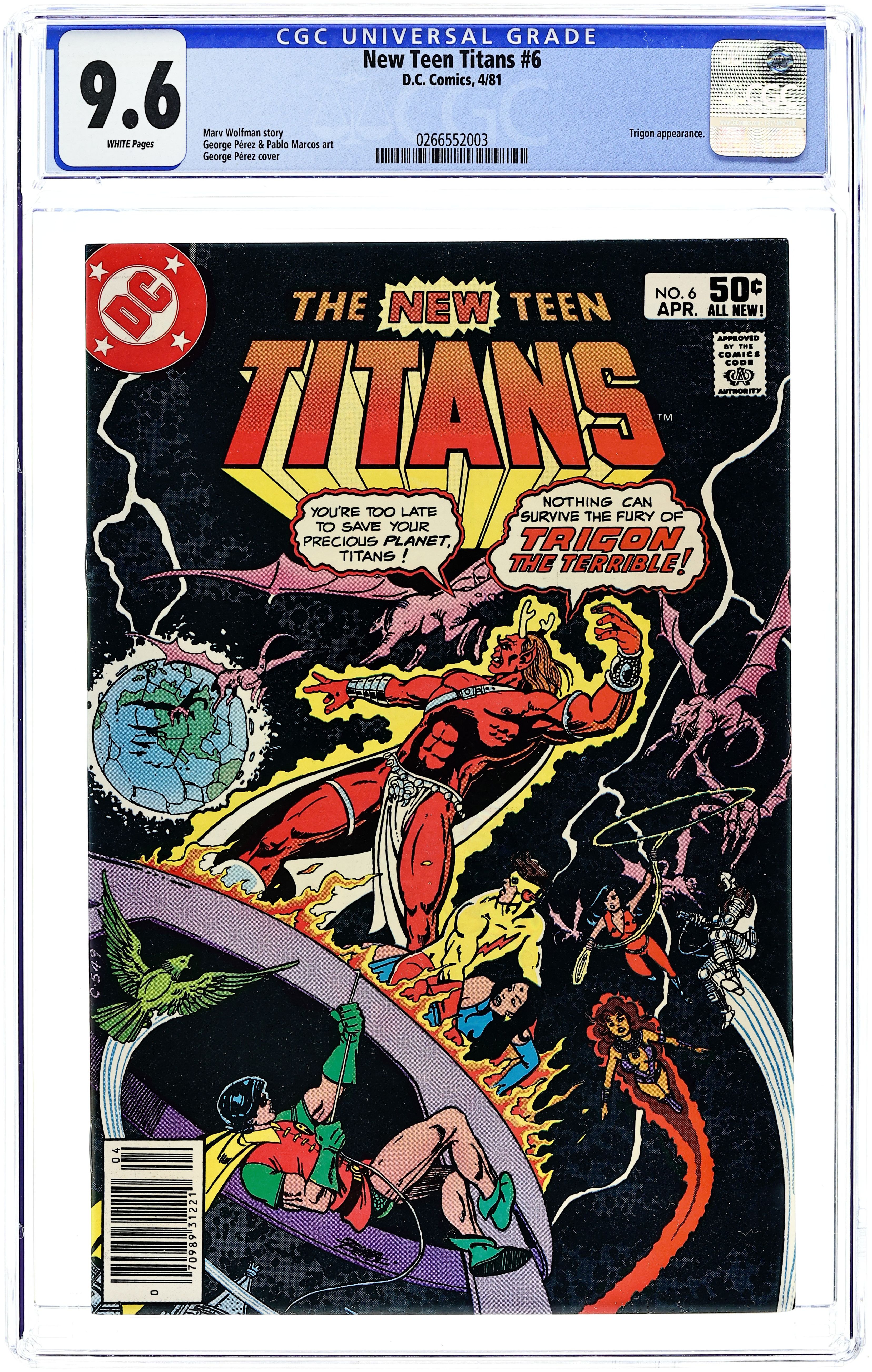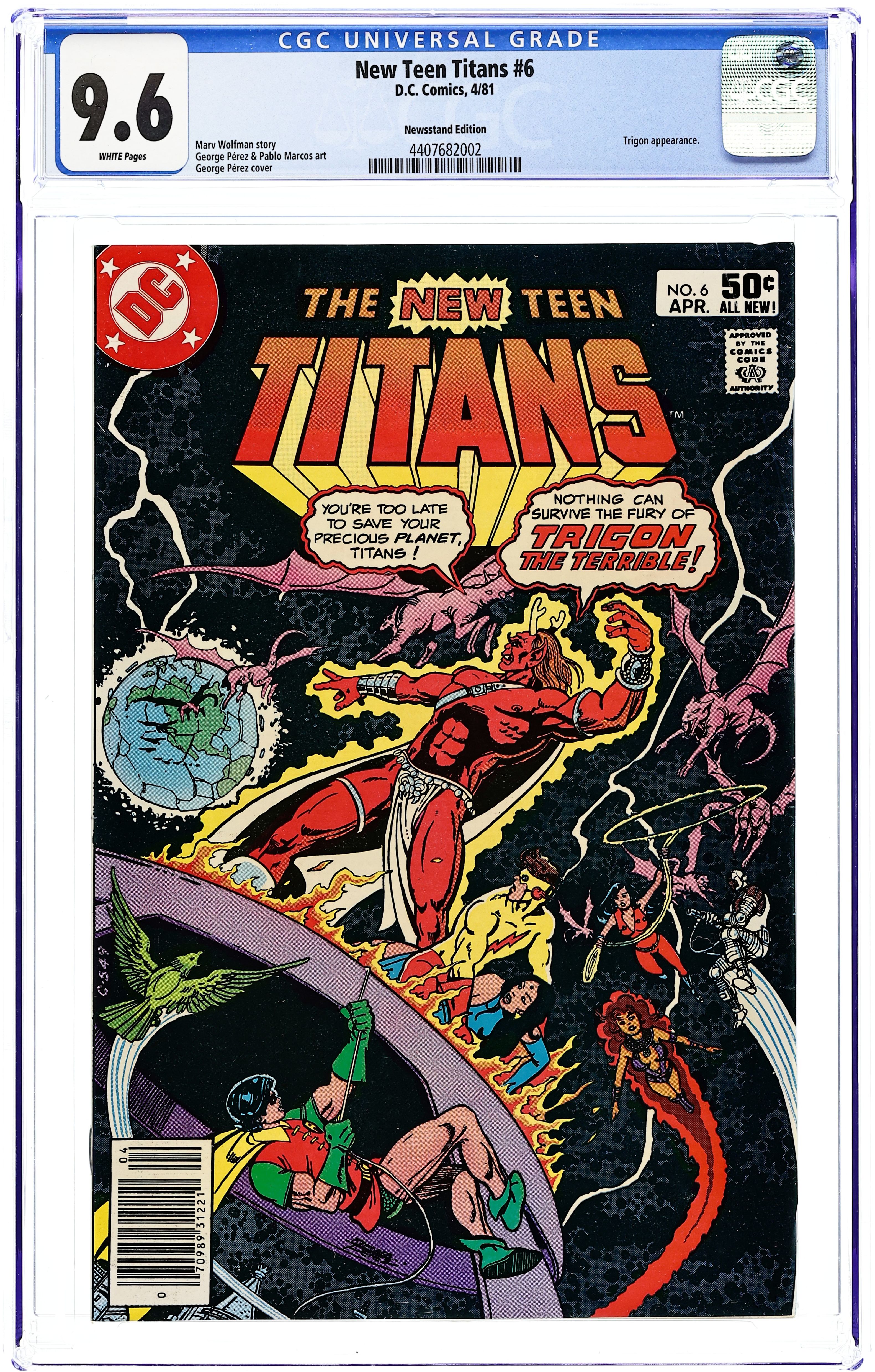 Newsstand Edition. Hoping to save Raven (not to mention the Earth itself), the Titans take the battle to Trigon's world in "Last Kill!" Script by Marv Wolfman, pencils by George Perez, inks by Pablo Marcos. Perez cover. Cover price $0.50.