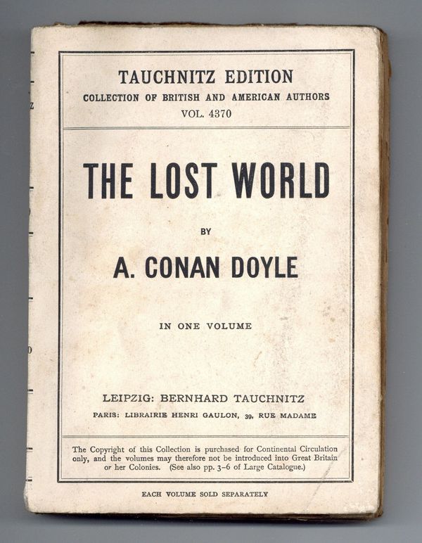 The Lost World by A. Conan Doyle. Tauchnitz published English language literature for distribution on the European continent outside Great Britain. 4.5" x 6.5", 288 pages, text.