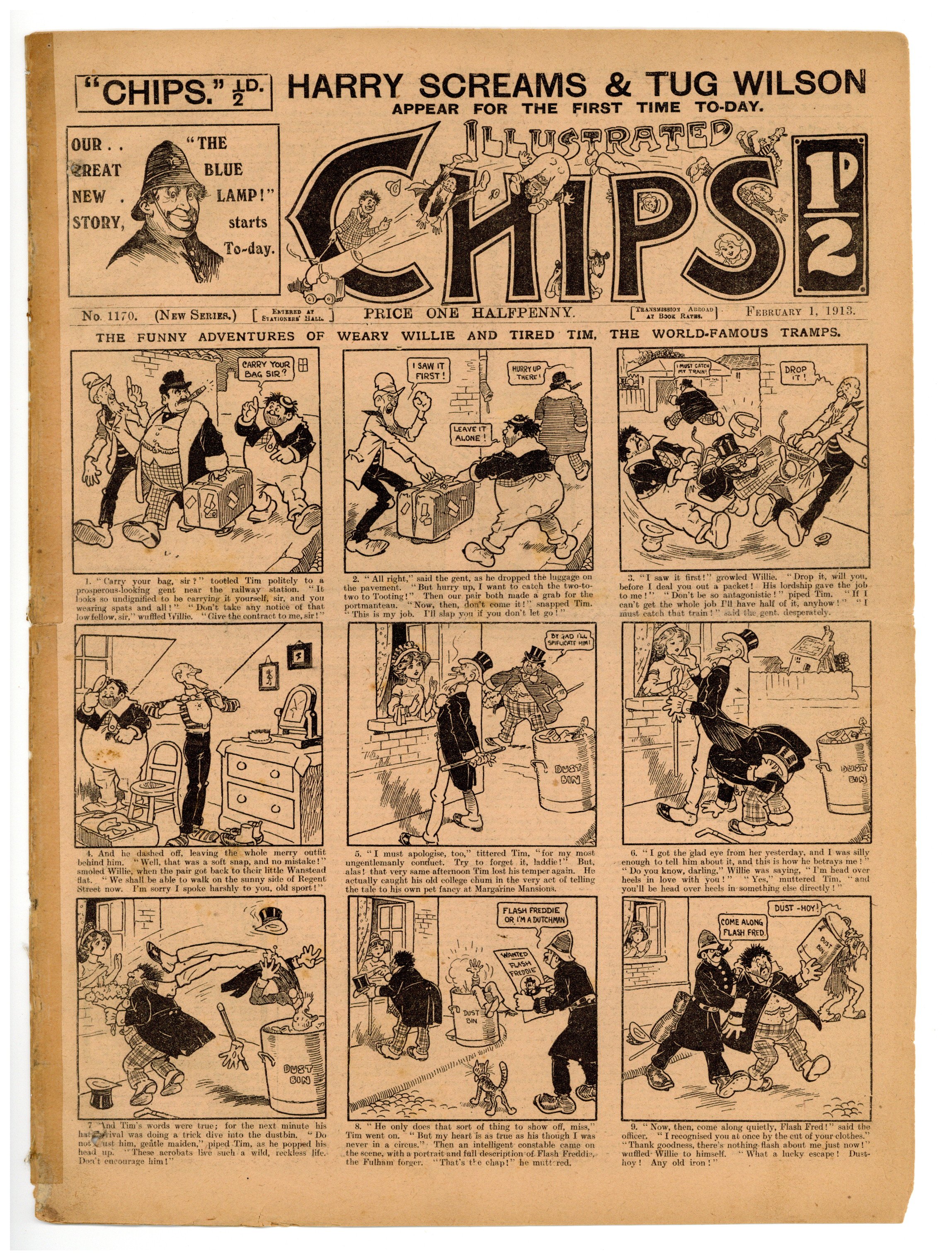 February 01, 1913. Illustrated Chips was a weekly newspaper of comics and stories. 10.75" x 14.75", 8 pages, B&W.