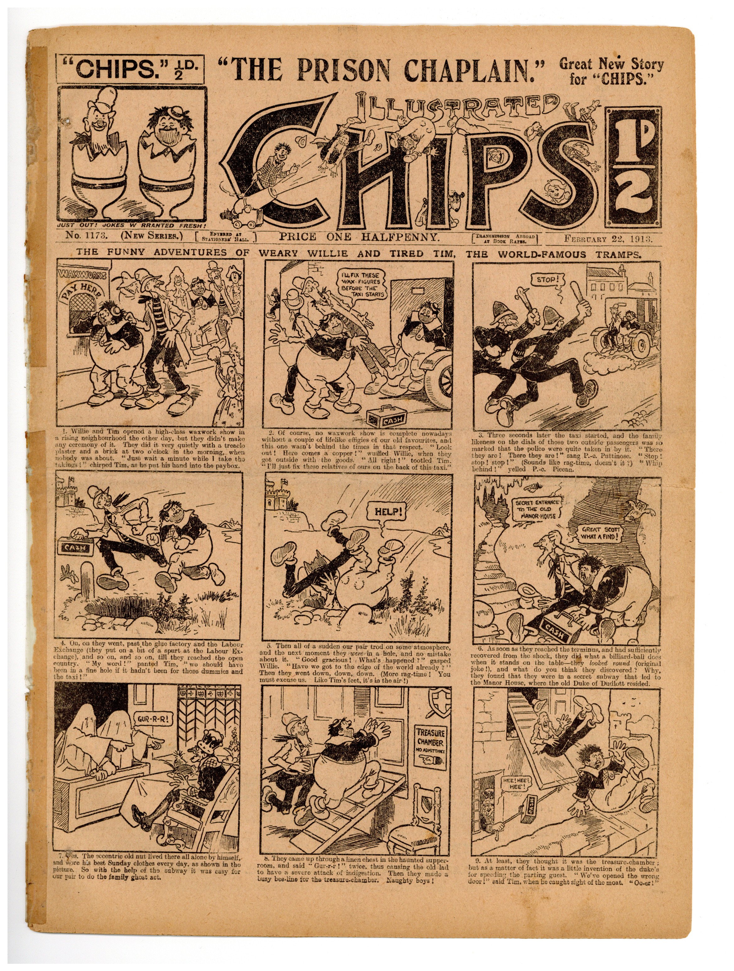 February 22, 1913. Illustrated Chips was a weekly newspaper of comics and stories. 10.75" x 14.75", 8 pages, B&W.