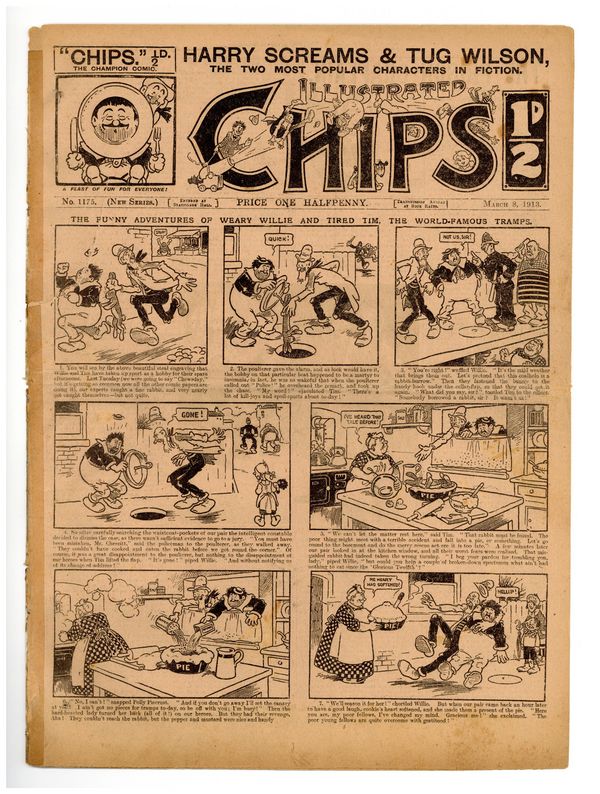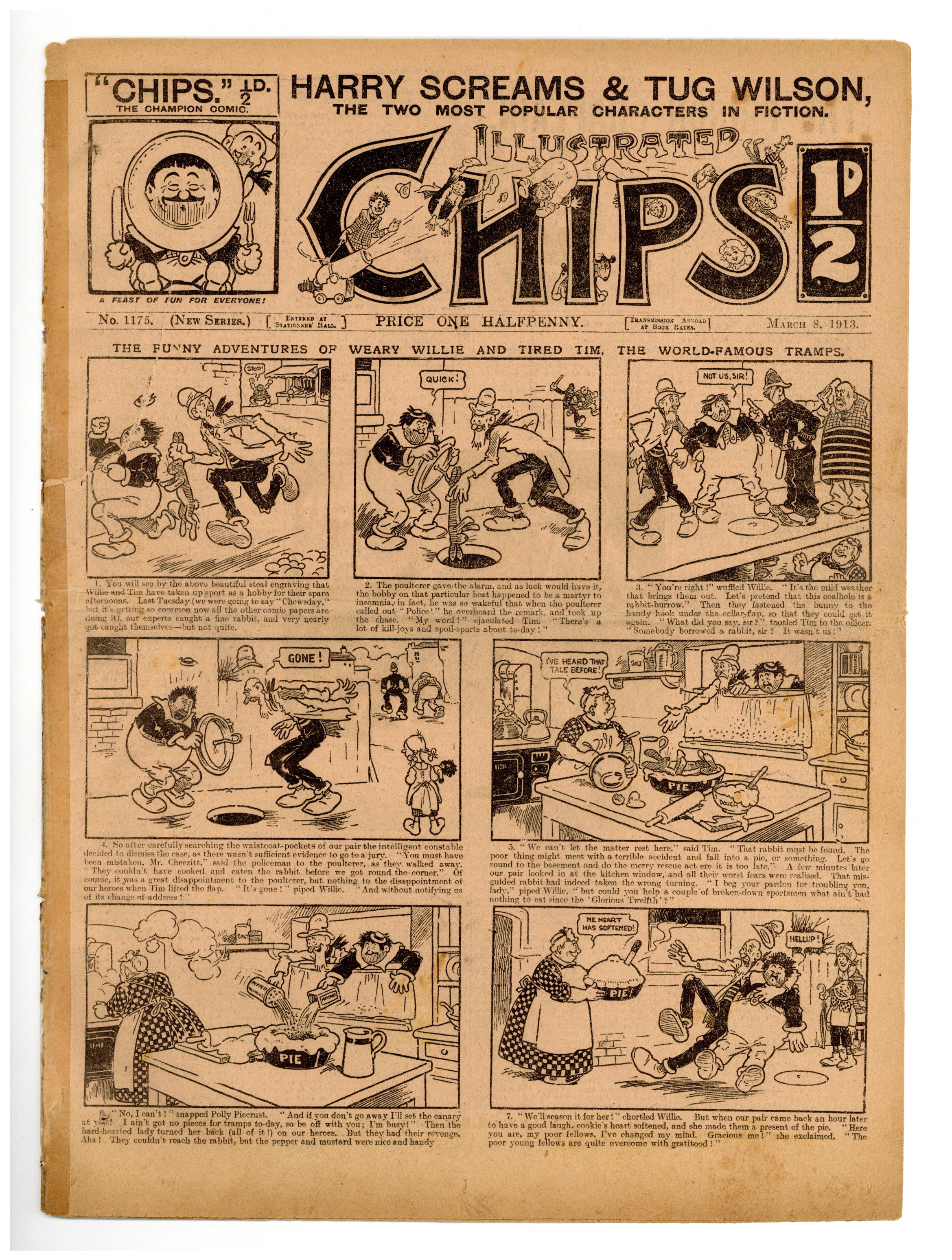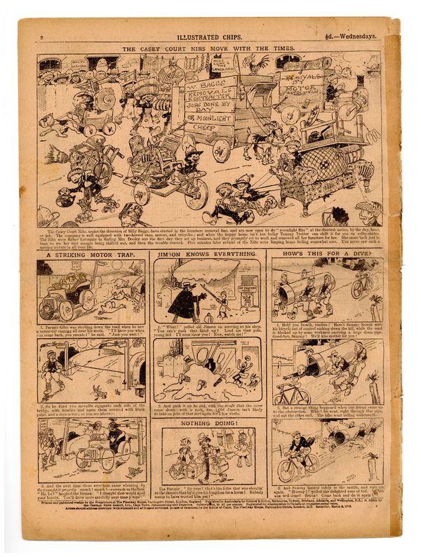 March 08, 1913. Illustrated Chips was a weekly newspaper of comics and stories. 10.75" x 14.75", 8 pages, B&W.