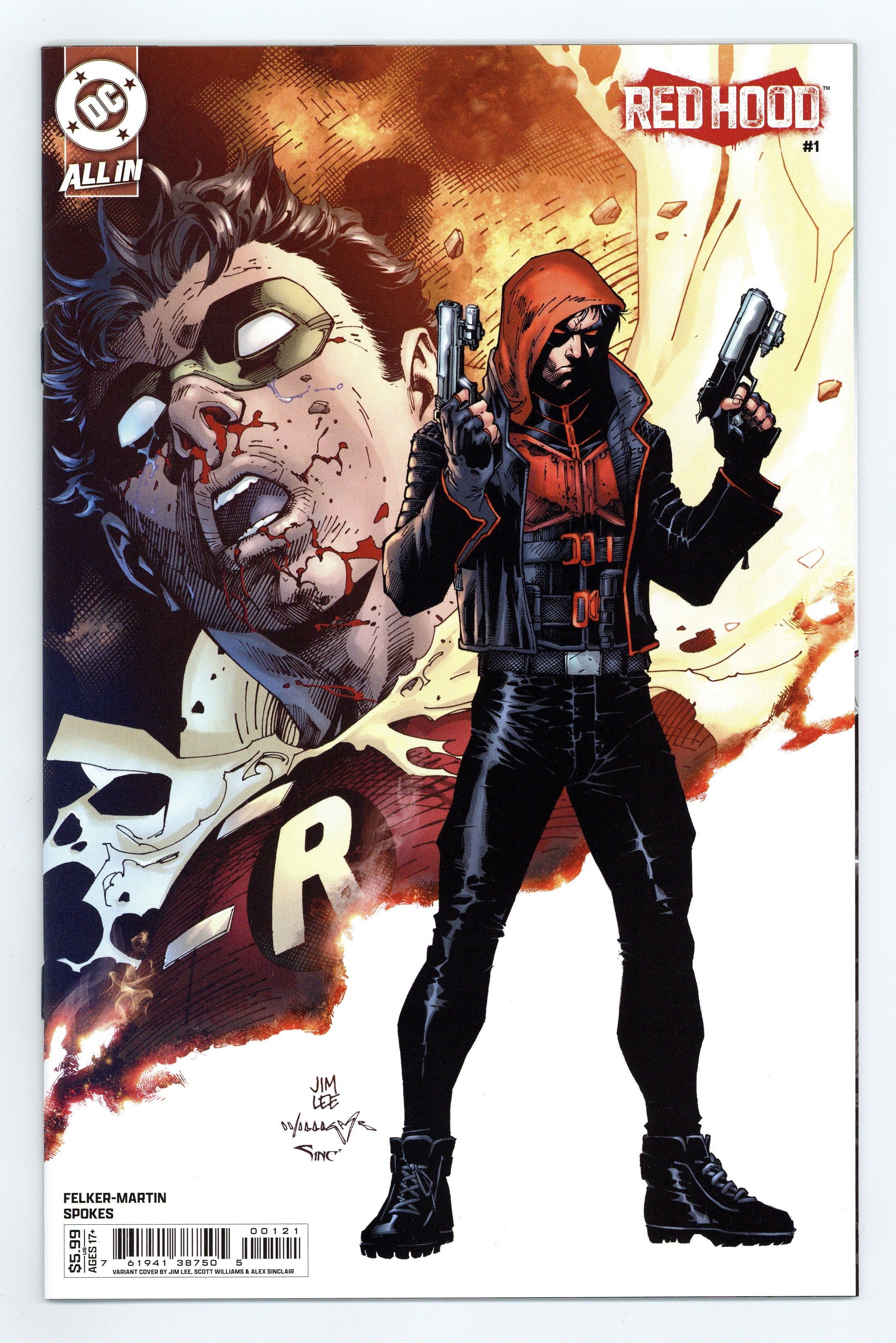 Written by Gretchen Felker-Martin. Art by Jeff Spokes. Cover by Jim Lee. ERUPTING FROM THE EVENTS OF H2SH COMES DC'S FIRST-EVER IN-CONTINUITY, MATURE READERS, ONGOING RED HOOD SERIES! Jason Todd has left Gotham and Batman behind him. All he's taking with him is his costume, his bike, and a metal briefcase containing two handguns (and lots of bullets). New Angelique seems like the perfect place for Red Hood to put down roots. There's crime, vice, and corruption everywhere. When Jason discovers a superpowered serial killer who is targeting the city's police, he finds himself sucked into a terrible and bleak conspiracy with seemingly no end in sight. But Jason isn't the only person on the scene. Following his trail is Helena Bertinelli a.k.a. Huntress. Is she here to stop him or help him? What will happen when the two black sheep of the Bat-Family start working together? Get ready for Red Hood like you've always wanted to see him. Cover price $5.99.